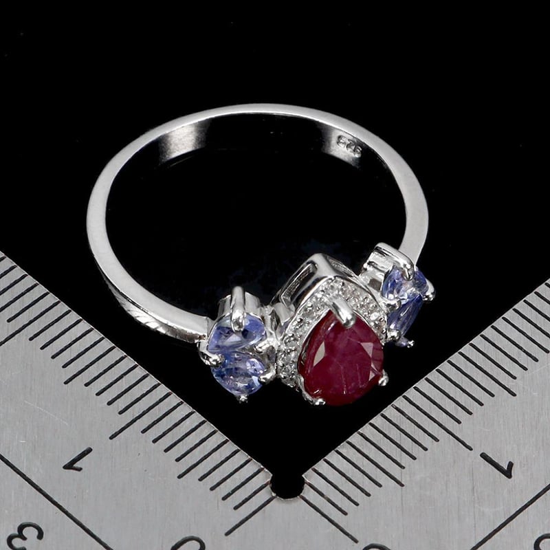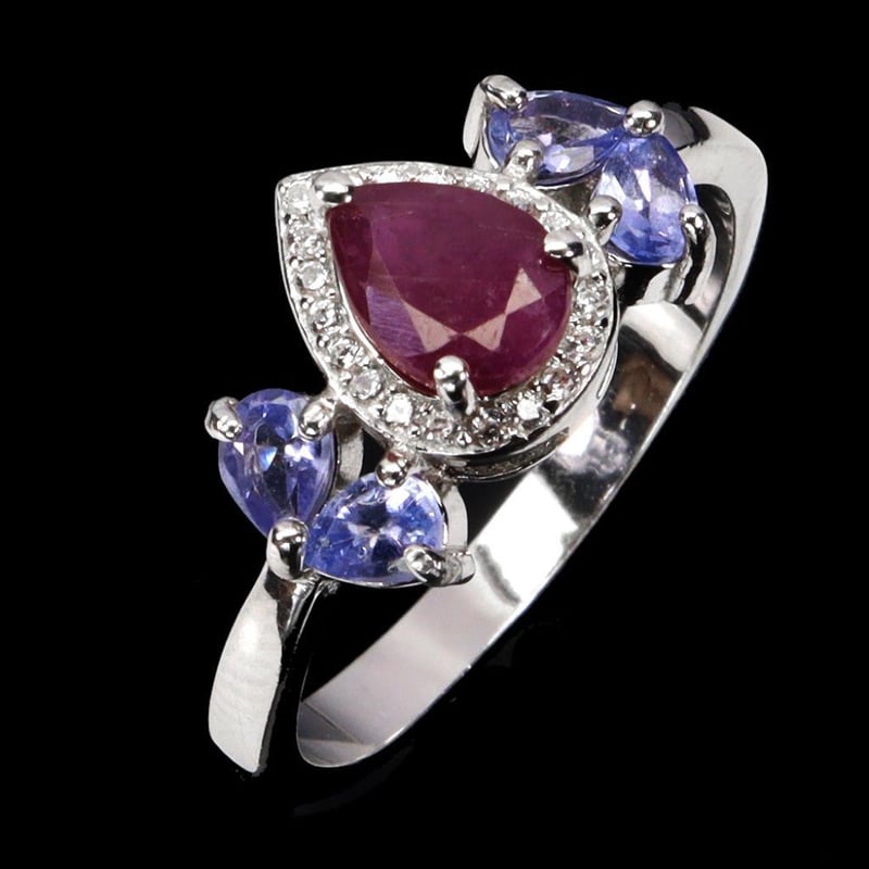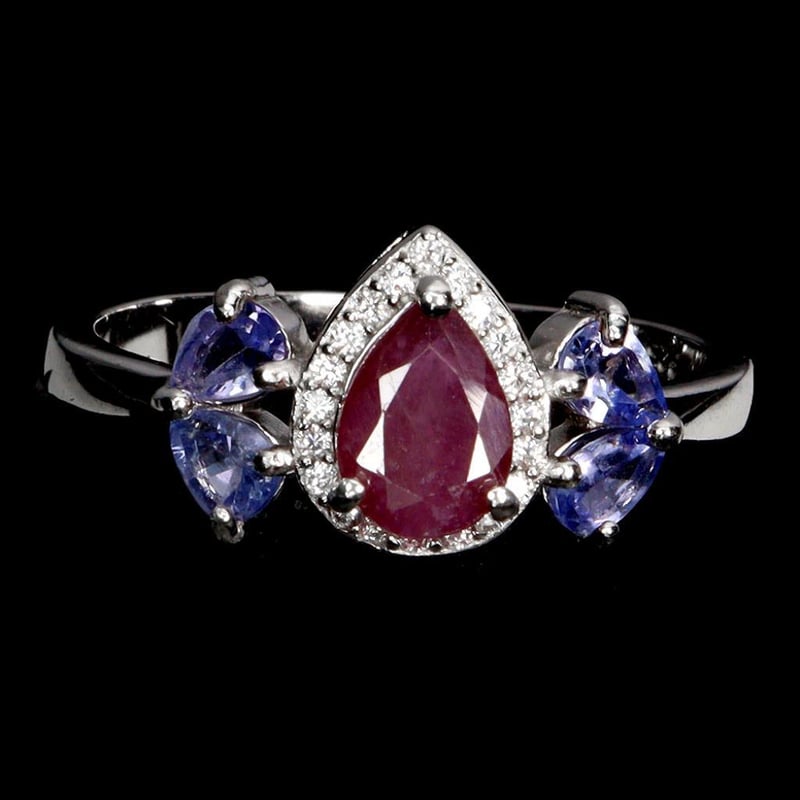 Natural Ruby & Tanzanite Ring.. Made In Solid Sterling Silver And Plated In14K White Gold. Features Natural Blood Red Ruby And Natural Violtish Blue Tanzanite'S, Ring Size 9