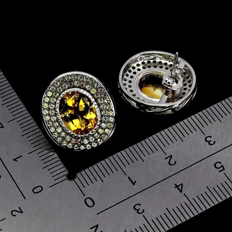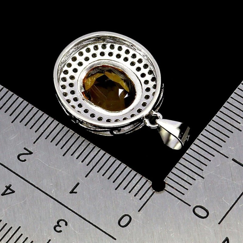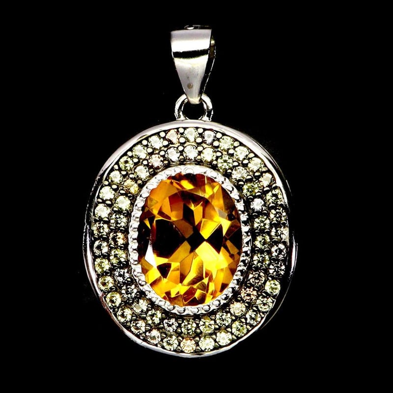Natural Diamond Cut Sapphire & Citrine Pendant. Made In Solid Sterling Silver And Plated In14K White Gold. Features Natural Diamond Cut Fancy Sapphires And Natural Golden Citrine. Pendant Measures 25X16Mm.