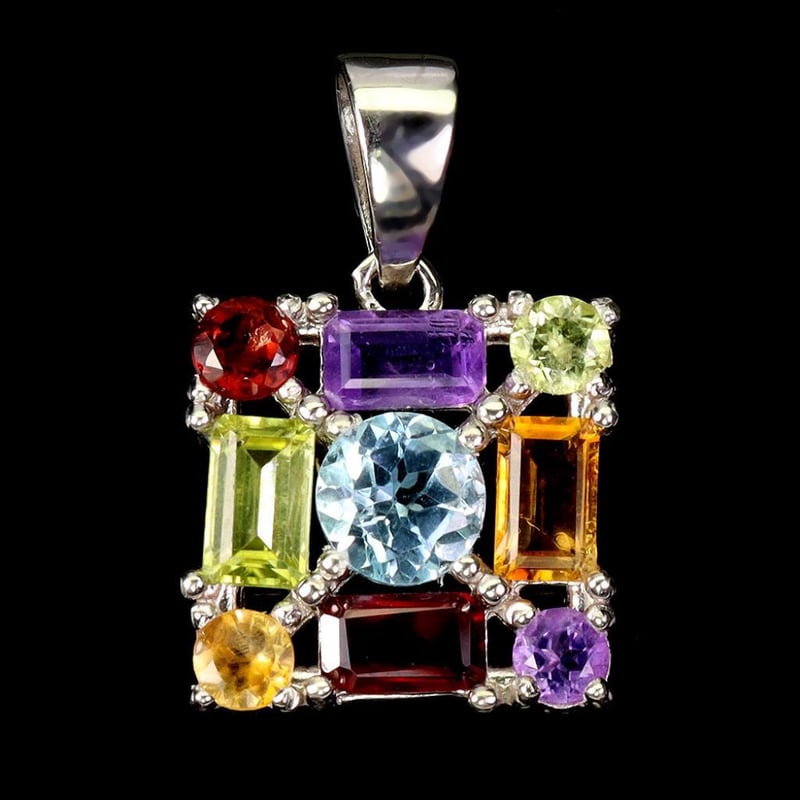 Natural Citrine Amethyst Topaz Pendant. Made In Solid Sterling Silver And Plated In14K White Gold. Features All Natural Citrine Amethyst Topaz. Pendant Measures 20.0 X 13.0 Mm.