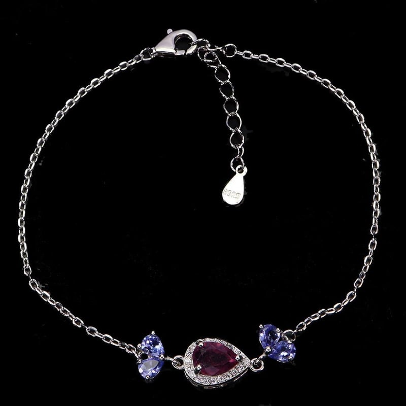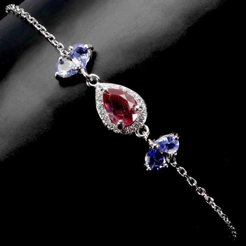 Natural Ruby & Tanzanite Bracelet. Made In Solid Sterling Silver And Plated In14K White Gold. Features Natural Blood Red Ruby And Natural Violtish Blue Tanzanite'S, Bracelet Measures 8 Inches.