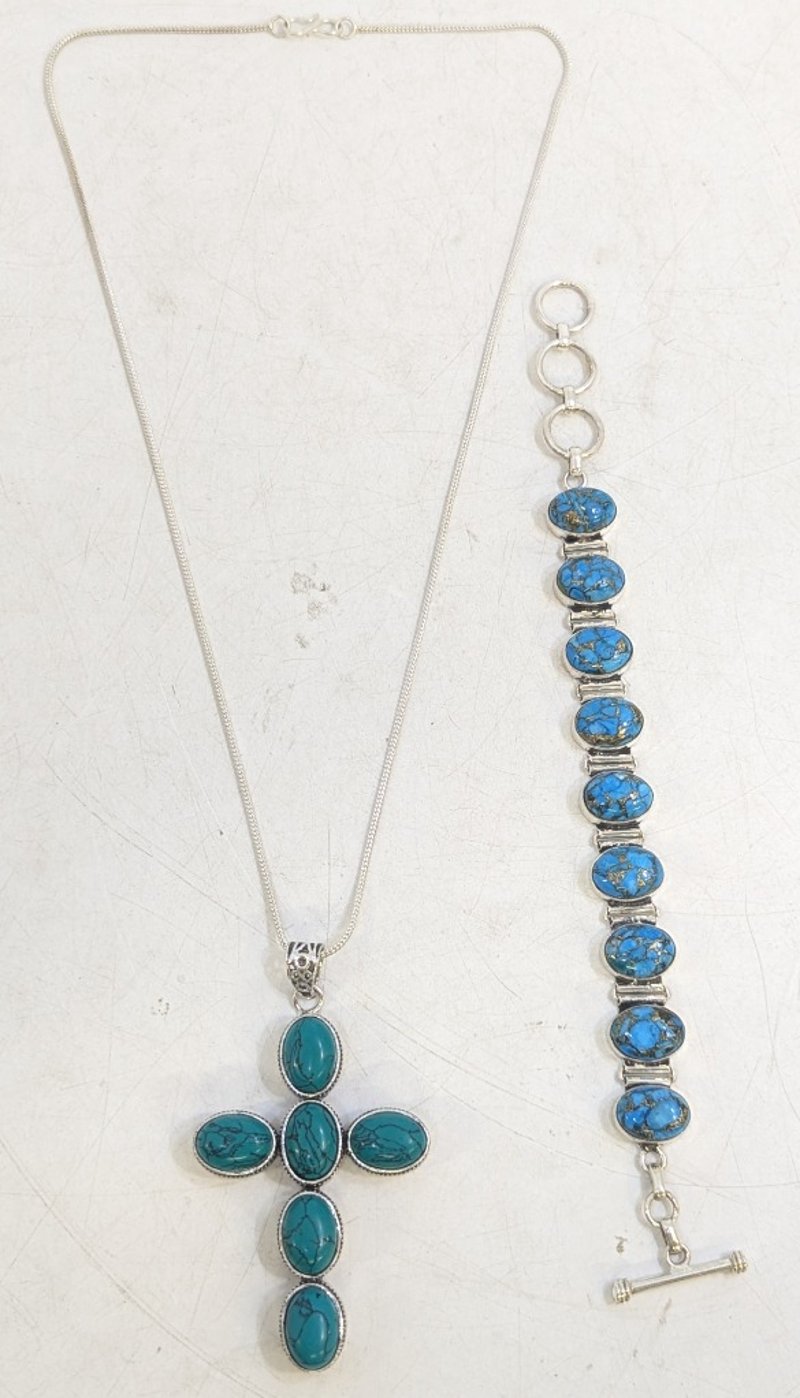 TWO 925 SILVER TURQUOISE JEWELLERY