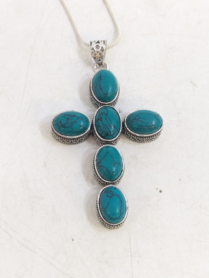 Turquoise Cross Pendant Necklace, Pendant Height Approx: 8Cm