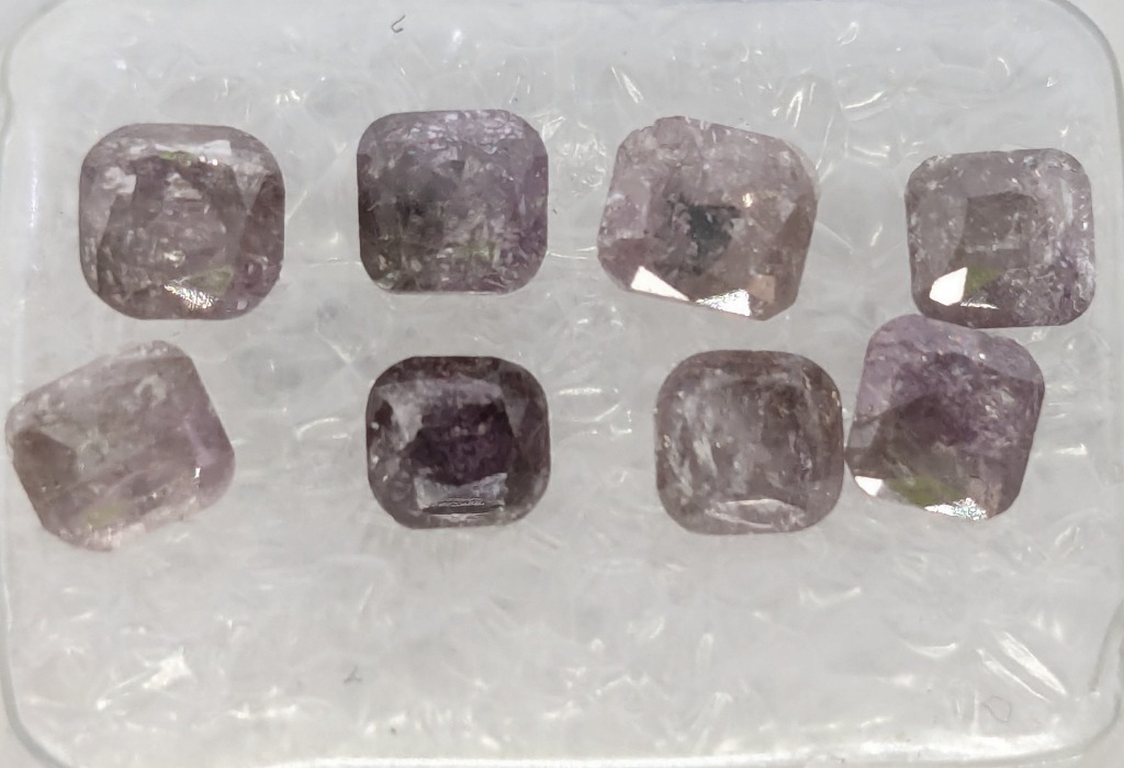 3.46TCW CUSHION PINKISH PURPLE NATURAL DIAMONDS 8 Stones, 0.43 Ct I3 Cushion & Square Chusion Pinkish Purple Accompanied By Algt Report No. 58872105 Condition: Good - Refer To Images FC 162968+12
