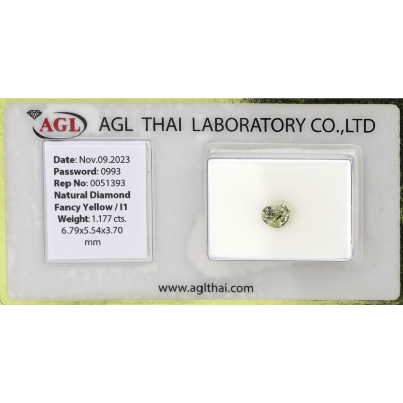 1.177CT CERTIFIED, NATURAL DIAMOND, PEAR BRILLIANT CUT, FANCY YELLOW, I1 CLARITY, LOOSE, UNSET. STONE COMES SEALED WITH AGL REPORT: 0051393. CONDITION: NEW. Valuations Provided by an Independent Third-Party Professional Not Directly Associated With Lloyds Auctions at AUD $11500This valuation has been conducted by an independent third-party professional. The valuation amount is an assessment by the issuing valuer and does not reflect the auction value of the item. Any inquiries regarding the valuation should be directed to the issuing valuer (refer to contact details on the certificate), as Lloyds Auctions has no affiliation or influence over the valuation, the valuer, or the stated amount. Condition: Good - Refer Images 0+2018