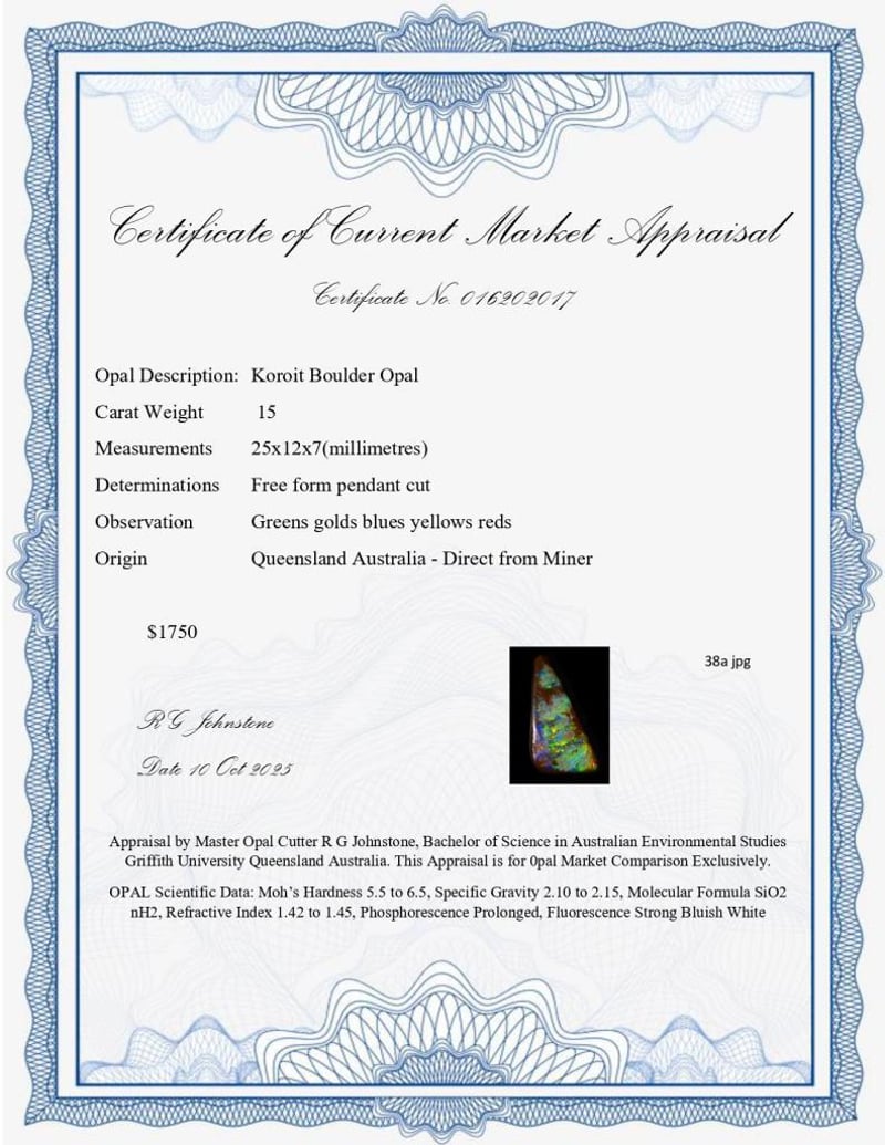 15 CARATS KOROIT BOULDER OPAL. FREE FORM PENDANT CUT WITH GOOD COLOUR. 25X12X7