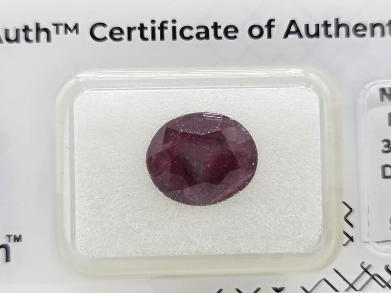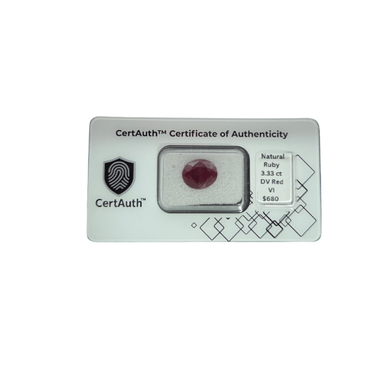 Certified 3.330Ct Natural Ruby In Deep Vivid Red With A Classic Oval Cut. Displays Strong Colour Saturation And Natural Inclusions Consistent With Authentic Rubies.
