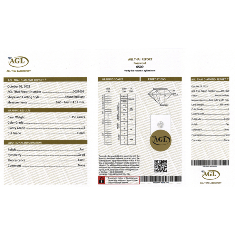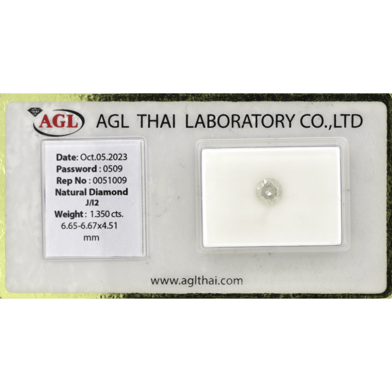 1.350CT CERTIFIED, NATURAL DIAMOND, ROUND BRILLIANT CUT, J COLOUR, I2 CLARITY, LOOSE, UNSET. STONE COMES SEALED WITH AGL REPORT: 0051009.