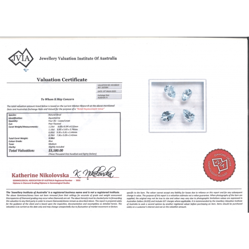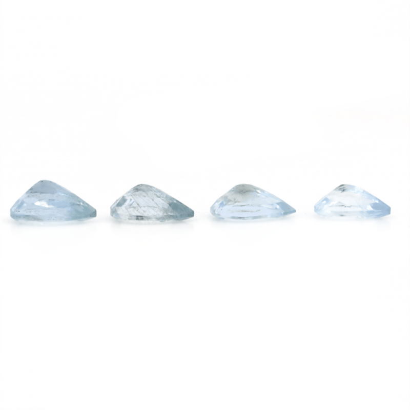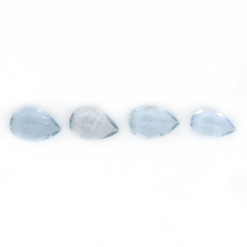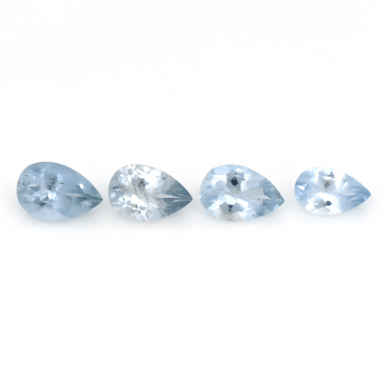 3.98CT TSW X 4, NATURAL BERYL AQUAMARINES, PEAR FACETED CUT, MEDIUM BLUE, SLIGHTLY INCLUDED, LOOSE, UNSET.