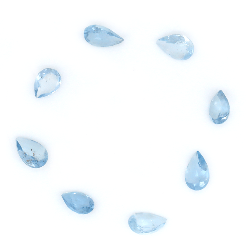 2.16CT TSW X 8, NATURAL BERYL AQUAMARINES, PEAR FACETED CUT, MEDIUM BLUE, SLIGHTLY INCLUDED, LOOSE, UNSET. Valuations Provided by an Independent Third-Party Professional Not Directly Associated With Lloyds Auctions at AUD $1500This valuation has been conducted by an independent third-party professional. The valuation amount is an assessment by the issuing valuer and does not reflect the auction value of the item. Any inquiries regarding the valuation should be directed to the issuing valuer (refer to contact details on the certificate), as Lloyds Auctions has no affiliation or influence over the valuation, the valuer, or the stated amount. Condition: Good - Refer Images 0645872+2198