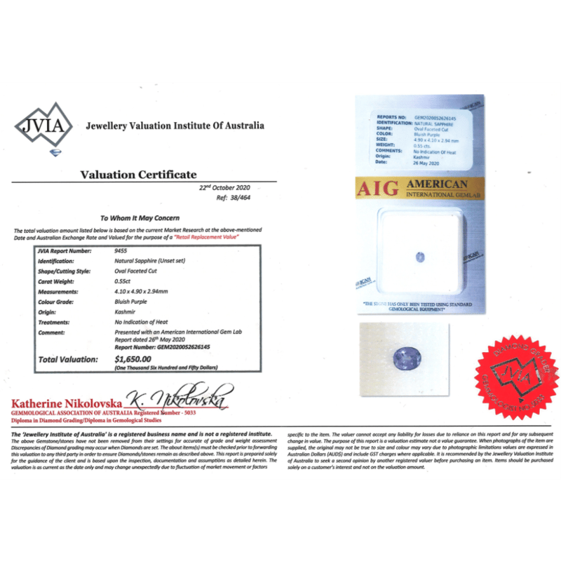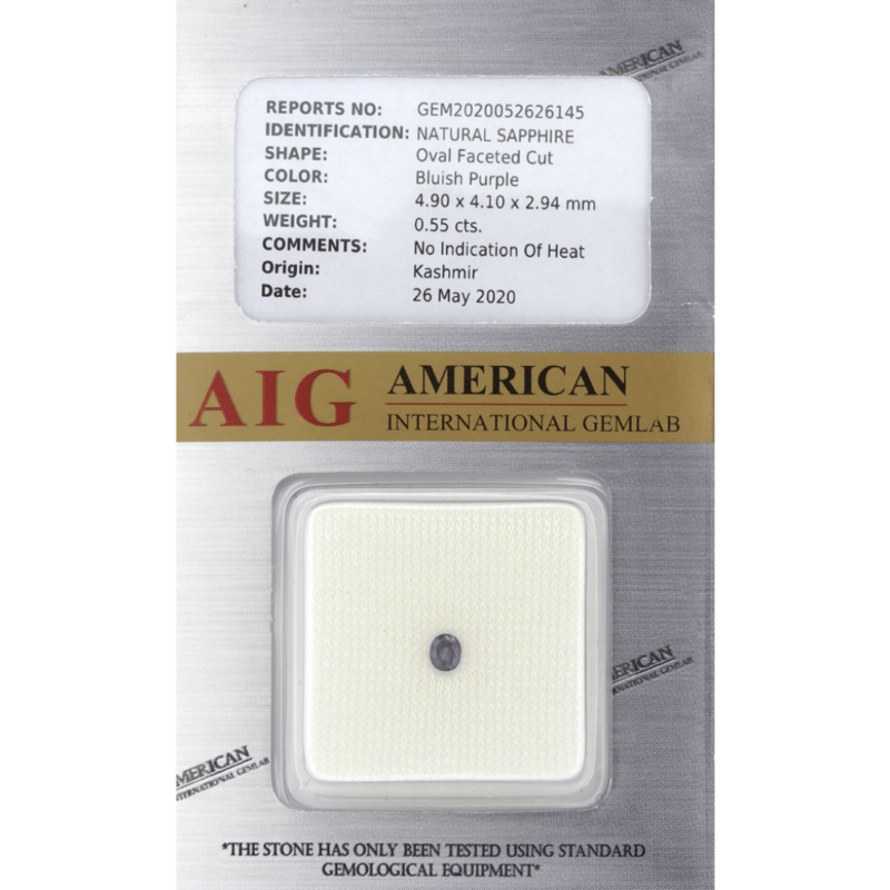 0.55CT CERTIFIED, NATURAL PURPLE SAPPHIRE, OVAL FACETED CUT, BLUISH-PURPLE, LOOSE, UNSET. STONE COMES SEALED WITH AIG REPORT: GEM2020052626145.