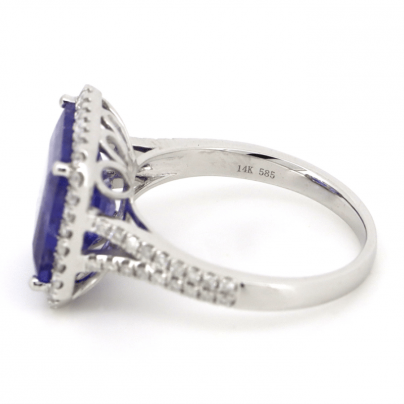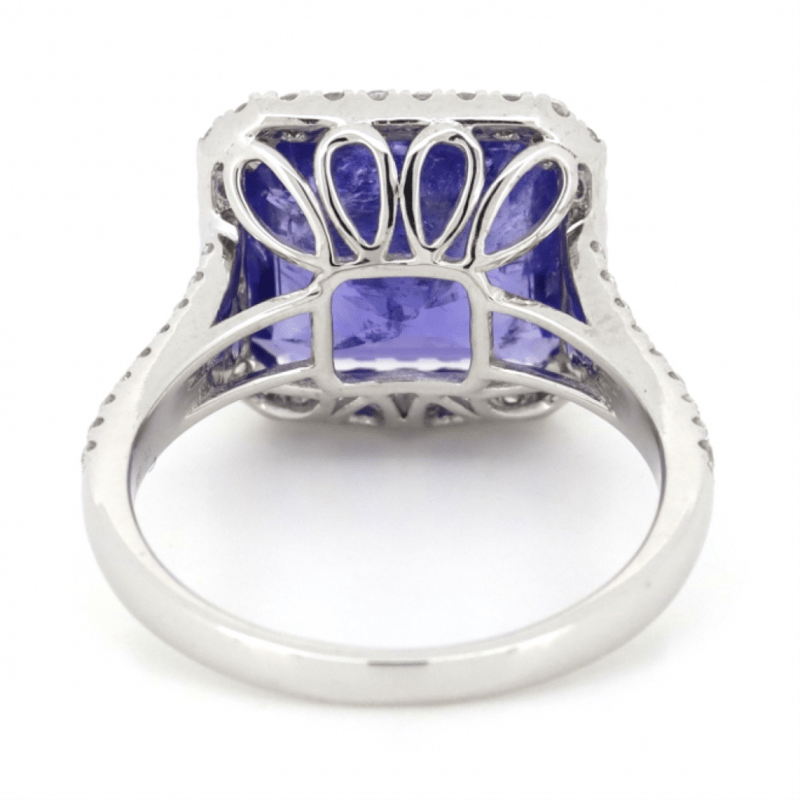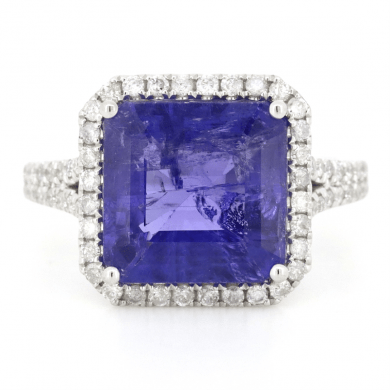 14K WHITE GOLD, TANZANITE AND DIAMOND, HALO RING. THE CENTRE FEATURES, ONE ASSCHER CUT, PURPLISH-BLUE, TANZANITE (5.11CT, MODERATE EYE VISIBLE INCLUSIONS), CLAW SET. SURROUNDING THE CENTRE IN A HALO AND DECORATING THE BAND ARE, 68 ROUND BRILLIANT CUT, DIAMONDS (0.46CT TDW, J-K COLOUR, SI2-I2 CLARITY), MICRO-CLAW SET. RING SIZE M 1/2. Valuations Provided by an Independent Third-Party Professional Not Directly Associated With Lloyds Auctions at AUD $$10,290.00This valuation has been conducted by an independent third-party professional. The valuation amount is an assessment by the issuing valuer and does not reflect the auction value of the item. Any inquiries regarding the valuation should be directed to the issuing valuer (refer to contact details on the certificate), as Lloyds Auctions has no affiliation or influence over the valuation, the valuer, or the stated amount. Condition: Good - Refer Images 0645858+1611