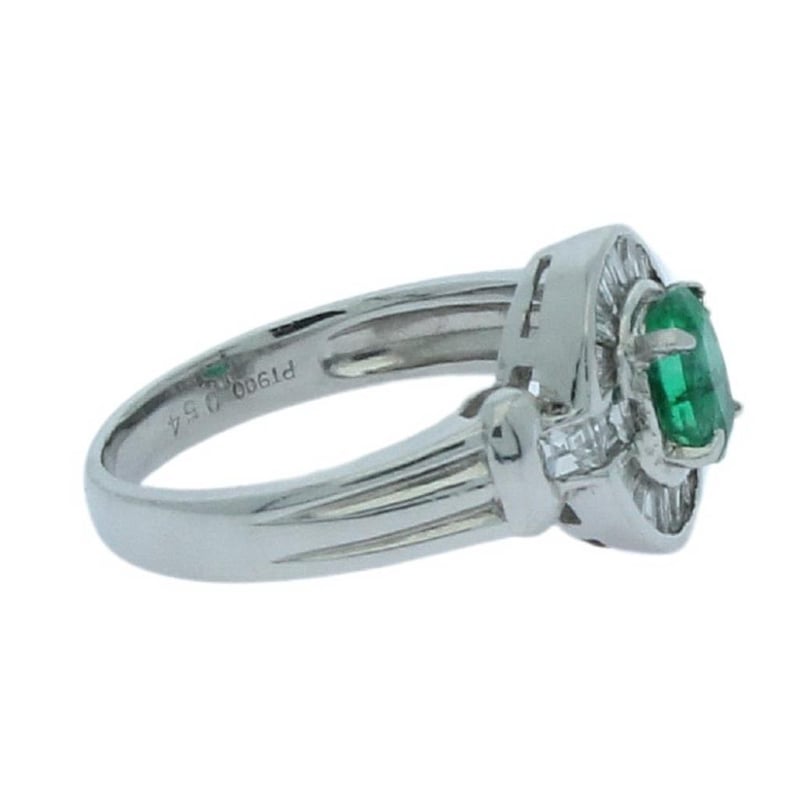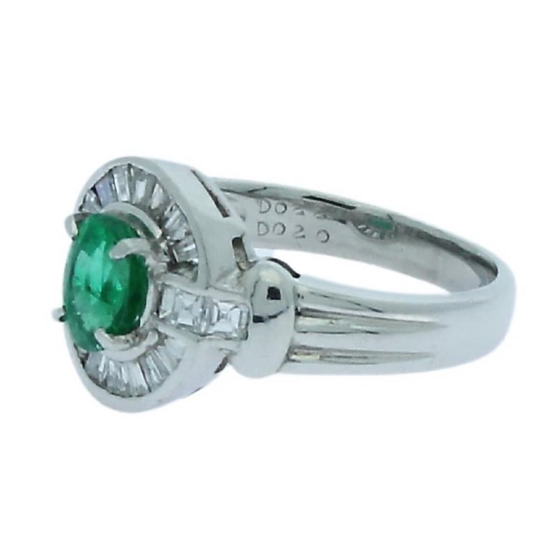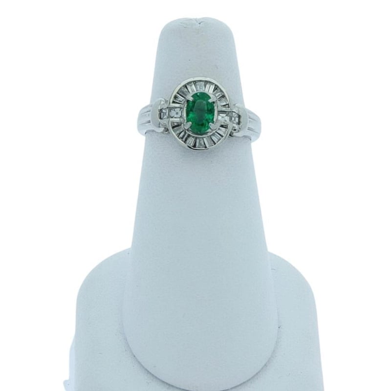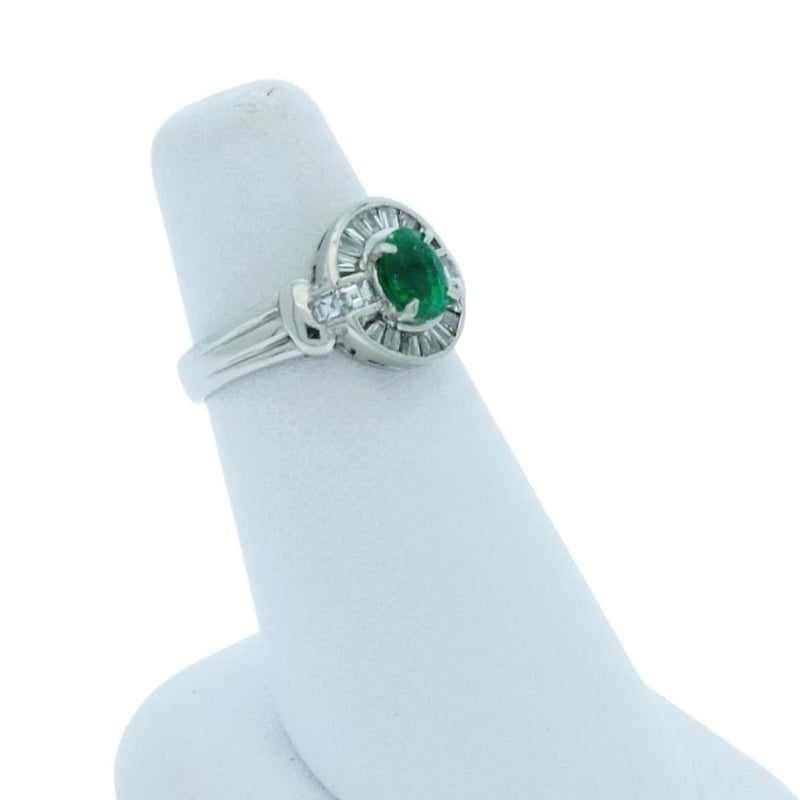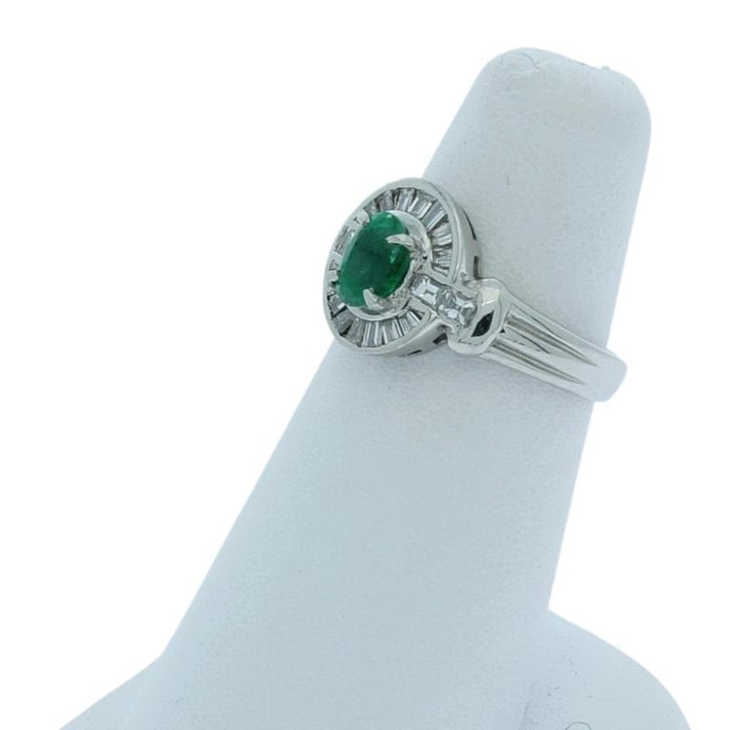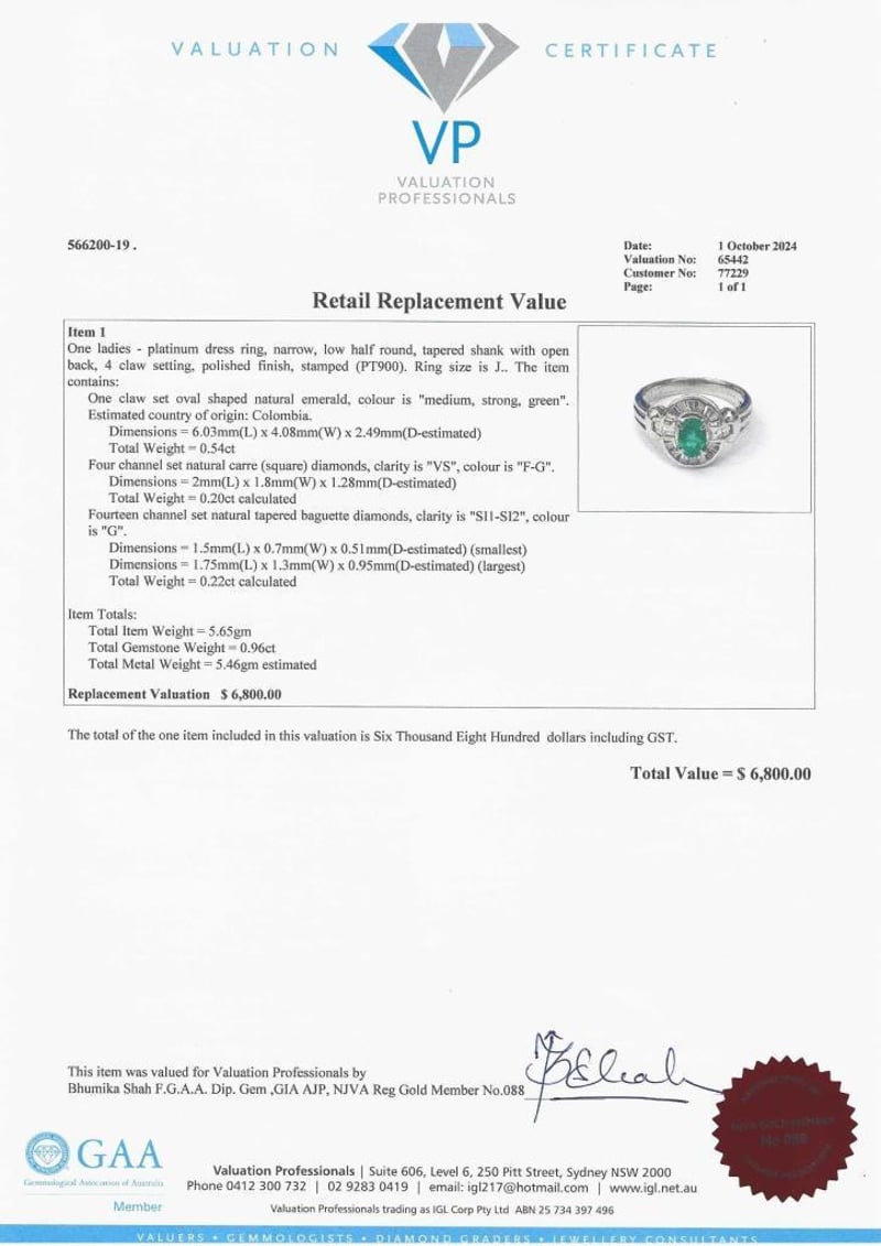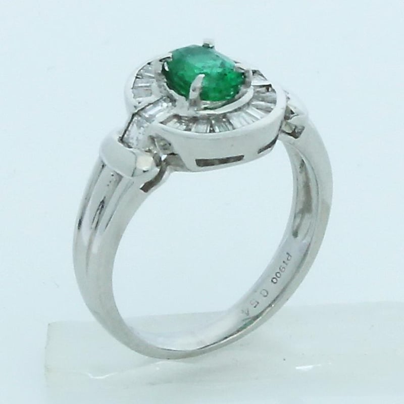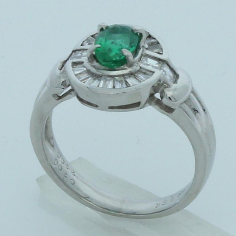 Platinum Emerald And Diamond Dress Ring, Narrow, Low Half Round, Tapered Shank With Open Back, 4 Claw Setting, Polished Finish, Stamped (Pt900). Ring Size Is J.. The Item Contains: