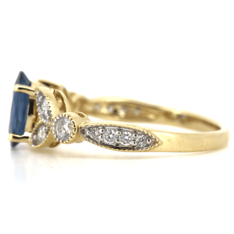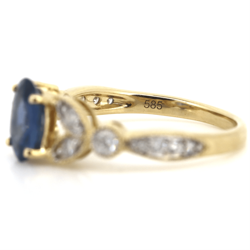 14K YELLOW GOLD, 1.13CT BLUE CEYLON SAPPHIRE AND DIAMOND, DRESS RING. THE CENTRE FEATURES, ONE OVAL CUT, MEDIUM-DARK VIOLET BLUE, CEYLON SAPPHIRE (1.13CT, DISPLAYS NATURAL COLOUR ZONING), 4 CLAW SET. DECORATING THE SETTING ARE, 14 ROUND BRILLIANT CUT, DIAMONDS (0.29CT TDW, H-J COLOUR, SI-I1 CLARITY), BEAD/BEZEL SET. RING SIZE M 1/2. Valuations Provided by an Independent Third-Party Professional Not Directly Associated With Lloyds Auctions at AUD $13200This valuation has been conducted by an independent third-party professional. The valuation amount is an assessment by the issuing valuer and does not reflect the auction value of the item. Any inquiries regarding the valuation should be directed to the issuing valuer (refer to contact details on the certificate), as Lloyds Auctions has no affiliation or influence over the valuation, the valuer, or the stated amount. Condition: Good - Refer Images 0645860+66