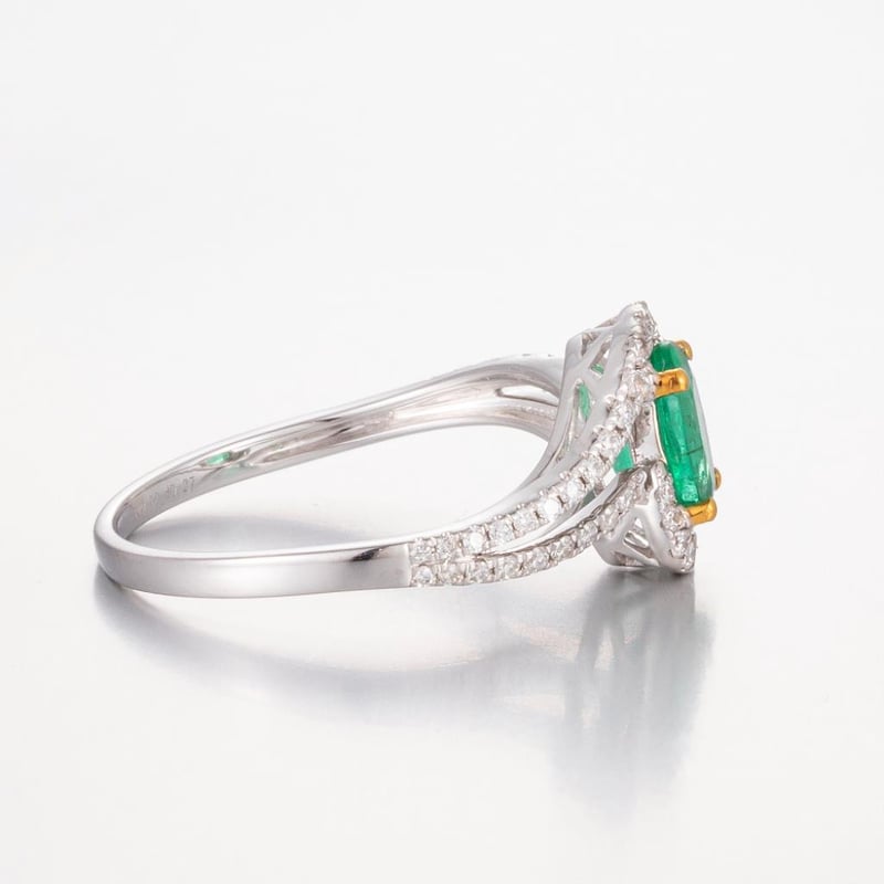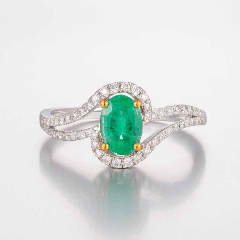 14CT WHITE GOLD ZAMBIAN EMERALD AND DIAMOND DRESS RING, FEATURING CENTRE, ONE OVAL CUT, VIVID BLUE-GREEN ZAMBIAN EMERALD (0.76CT, MODERATELY INCLUDED), CLAW SET YELLOW GOLD, WITH 54 ROUND BRILLIANT CUT DIAMONDS (0.27CT TDW, G-H COLOUR, VS1-VS2 CLARITY), BEAD SET. RING SIZE O. Valuations Provided by an Independent Third-Party Professional Not Directly Associated With Lloyds Auctions at AUD $19400This valuation has been conducted by an independent third-party professional. The valuation amount is an assessment by the issuing valuer and does not reflect the auction value of the item. Any inquiries regarding the valuation should be directed to the issuing valuer (refer to contact details on the certificate), as Lloyds Auctions has no affiliation or influence over the valuation, the valuer, or the stated amount. Condition: Good - Refer Images 0586211+1369
