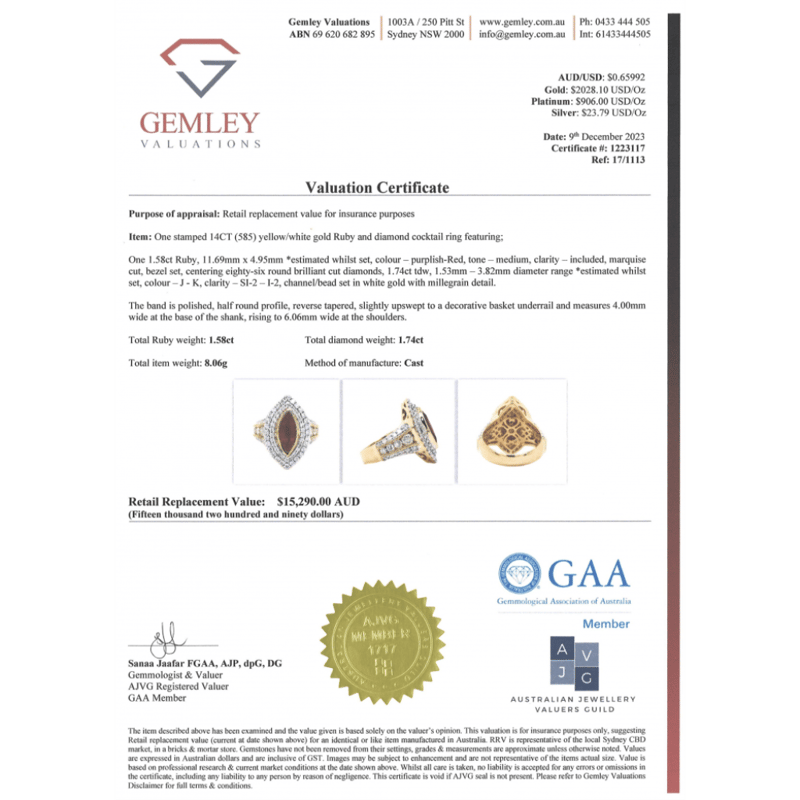 Valuations Provided by an Independent Third-Party Professional Not Directly Associated With Lloyds Auctions at AUD $15,290.00