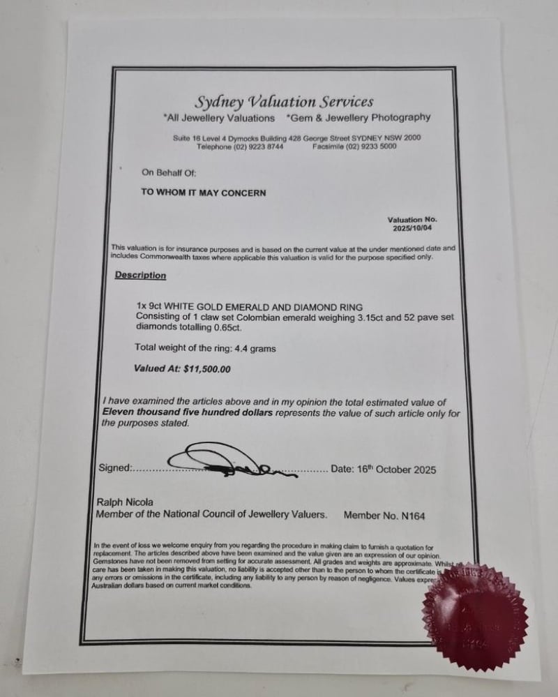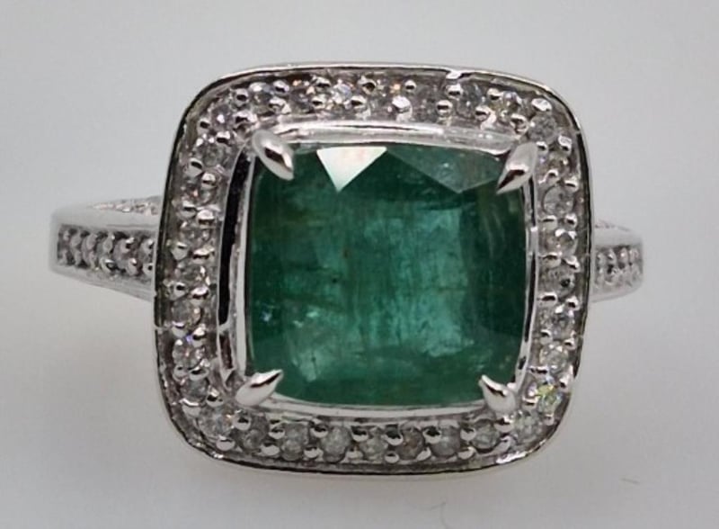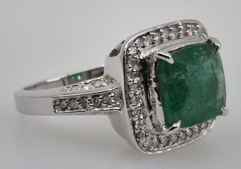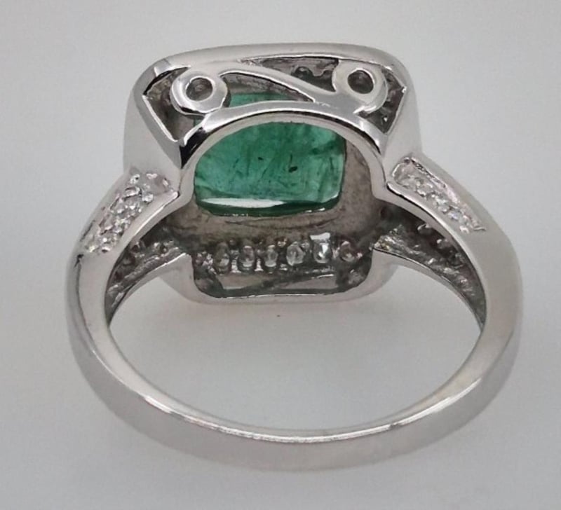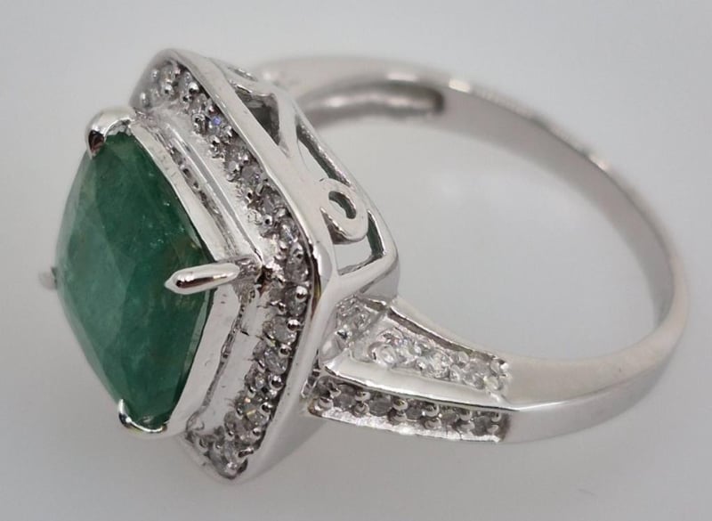 9K WHITE GOLD EMERALD AND DIAMOND RING