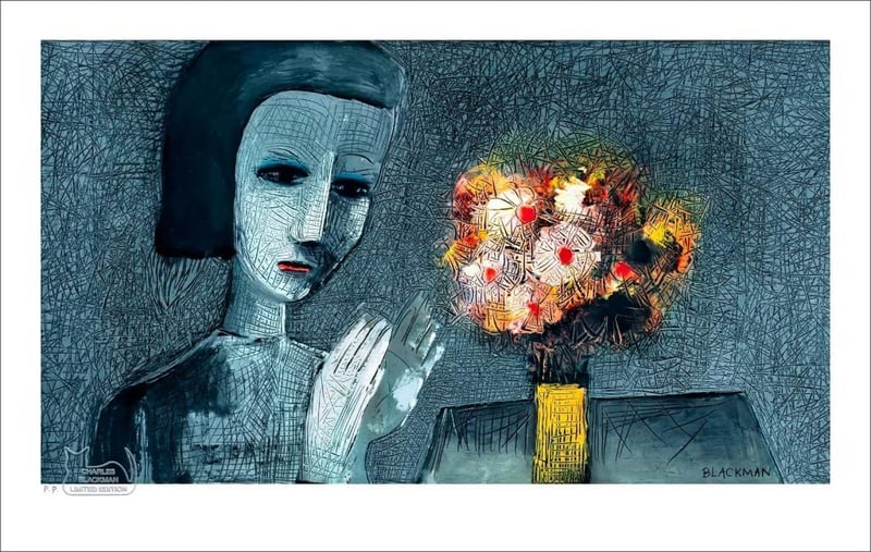 CHARLES BLACKMAN (1928 - 2018)Printers Proof Print - Archival Pigments on Artist Paper / CardTitle: Girl With FlowersSigned: Lower Image (Signed in Plate - Part of Print)Editioned: Lower Left, PP (In Pencil)Embossed Seal: Lower ImageImage Size: 24.5cm x 43.5cmSheet Size: 30.5cm x 48.5cmCondition: Excellent - NewUnframed.