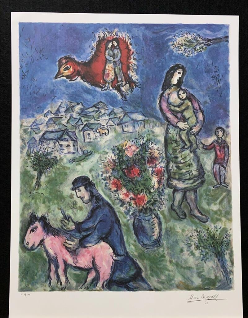 MARC CHAGALL (1887-1985)Limited Edition Colour Off Set LithographTitled: Sur La Route Du VillageEditioned: Edition of 300Image Size: 72cm x 57cm Sheet Size: 82cm x 62cmSignature: Signature of Marc Chagall is printed as part of the LithographCondition: Excellent (New)Unframed.
