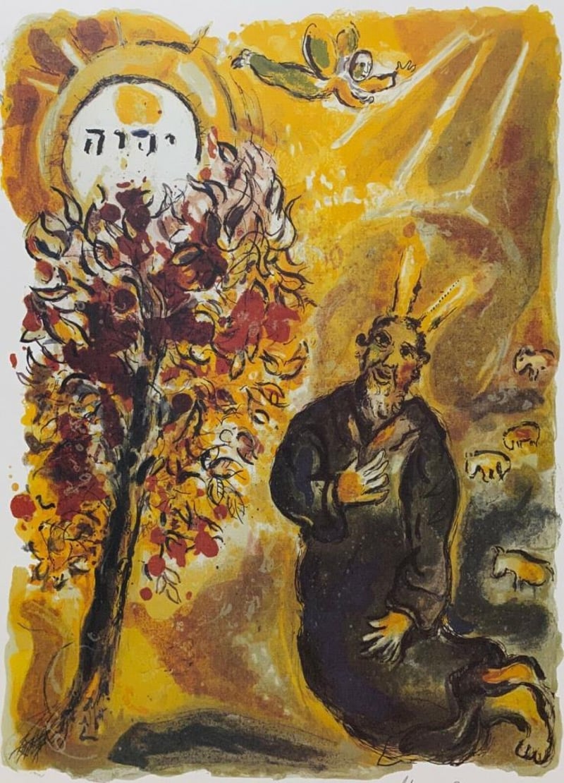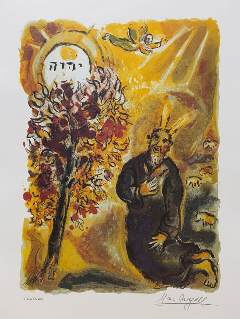 MARC CHAGALL (1887-1985)Limited Edition Colour Off Set LithographTitled: Exodus - Burning BushEditioned: Edition of 300Sheet Size: 56cm x 43cmSignature: Signature of Marc Chagall is printed as part of the LithographCondition: Excellent (New)Unframed.