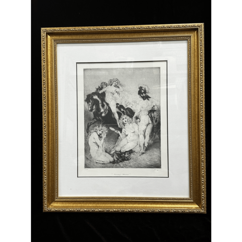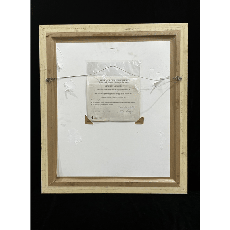 NORMAN LINDSAY FACSILE ETCHING "BEAUTY'S HONOUR" CERTIFICATE OF AUTHENTICITY ATTACHED.