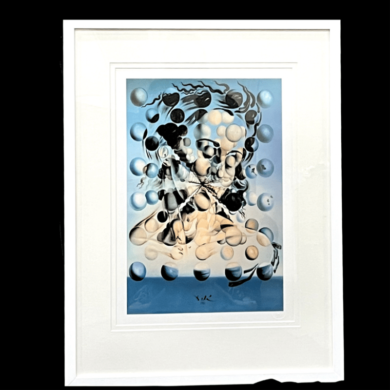SALVADOR DALI (1904-1986) "GALATEA OF THE SPHERES". DECORATIVE GICLEE AFTER THE ORIGINAL, FACSIMILE SIGNATURE. ARTWORK IS FRAMED AND READY TO HANG. IMAGE: 50CM X 36CM, FRAME: 62CM X 47CM. CONDITION: PRE-OWNED.