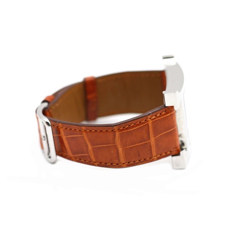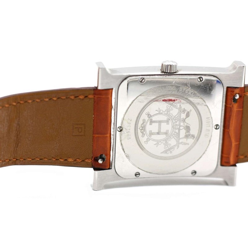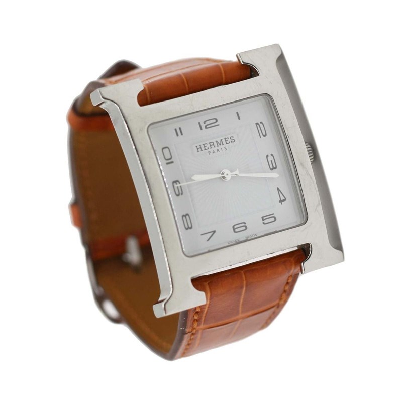 HERMES HEURE H WATCH 34 MM Price Guide - $1,000 - $2,500 Length: 23cm Height: 25mm Material Steel case and leather strap Movement - Quartz movement, Swiss Made. Water Resistant - Water-resistant to 3 bar. Additional Condition Report - Moderate sign of wear throughout - Moderate scratches on hardware Comes With - Original Box - Proof of Purchase Price Guide - $1,000 - $2,500 CROSSED DOCKED 155392+47