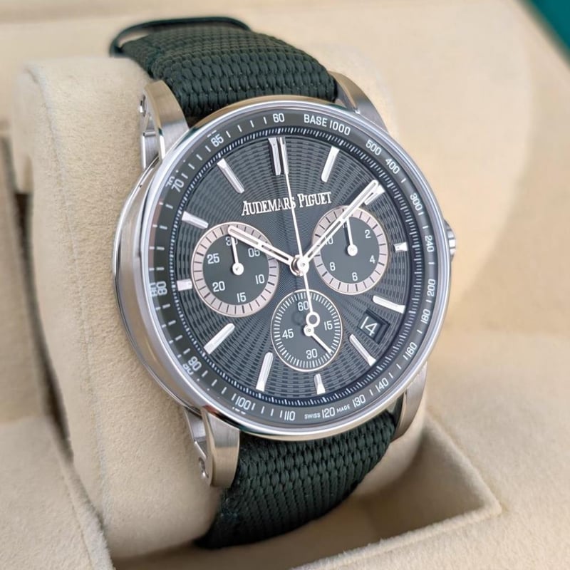AUDEMARS PIGUET 26393ST CODE 11.59 41MM 2023 BOX & PAPERS UNWORN Brand: Audemars Piguet Reference: 26393St.Oo.A056Kb.01 Model: Code 11.59 Self-Winding Chronograph Case Size: 41Mm Circa: 2023 Movement: Automatic Condition: Unworn Box: Yes Papers: Yes Condition: Good - Refer Images 0 488340+1