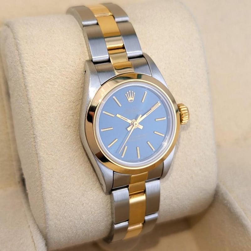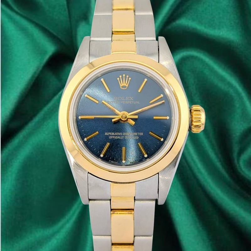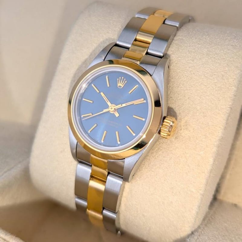 ROLEX 67183 OYSTER PERPETUAL LADY SUNBURST BLUE DIAL 26MM 1990