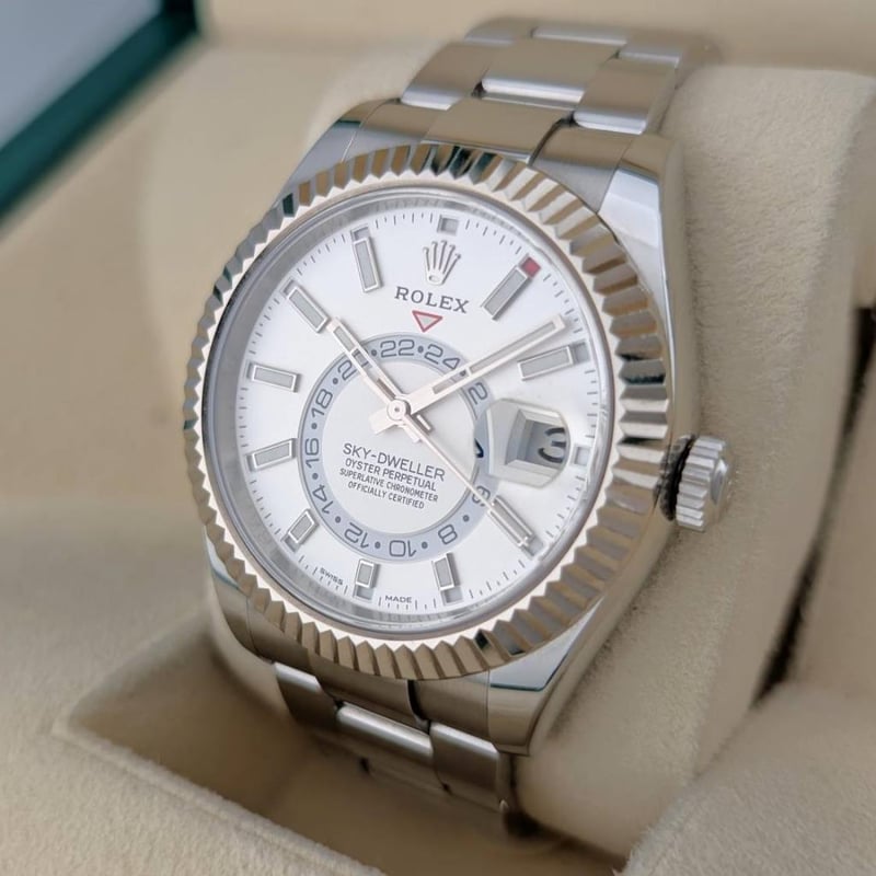 ROLEX 326934 SKY-DWELLER WHITE DIAL 42MM 2021 BOX & PAPERS Brand: RolexReference: 326934Model: Sky-Dweller White DialCase Size: 42MmCirca: 2021Movement: AutomaticCondition: GoodBox: YesPapers: Yes Condition: Good - Refer Images 0488340+5