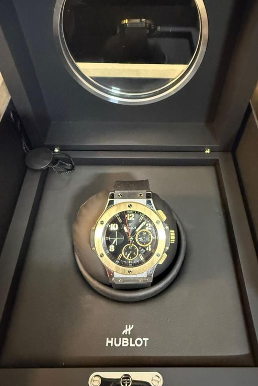 HUBLOT BIG BANG Brand: Hublot Dial: BLACK Case Size: 44MM Bracelet: RUBBER Box: Yes Papers: Yes Condition: Good - Refer to Images