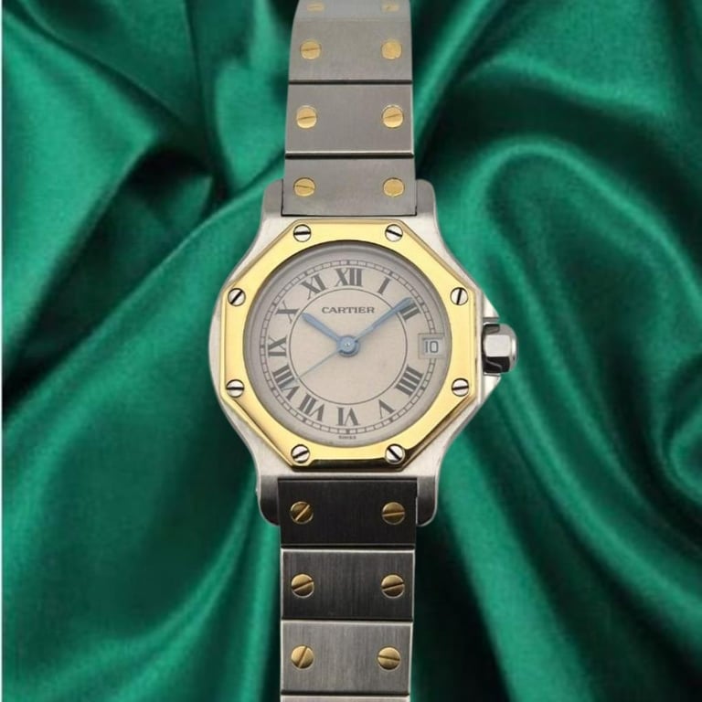 Model: Santos Octagon Two Tone Gold & Steel