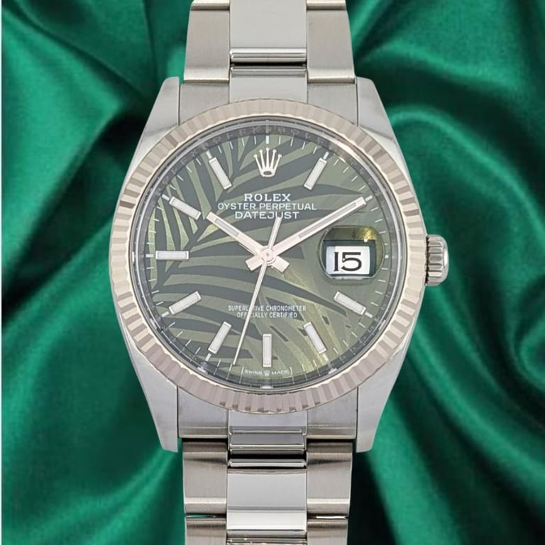 Model: Datejust 36 – Sunburst Green & Olive Dial With Palm Motif