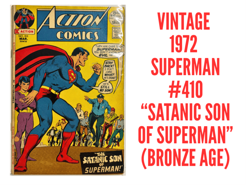 1972 SUPERMAN #410 – SATANIC SON OF SUPERMAN (BRONZE AGE DC) This Wild 1972 Issue Of Action Comics Features A Bold Bronze Age Tale Where Superman Must Confront His Evil Son From The Future. A Twisted Alternate Reality Unfolds With Gripping Storytelling And Vibrant Cover Art. - 1972 Action Comics #410 - Classic Bronze Age Superman Story - Evil Alternate Future / Family Twist 584901+70