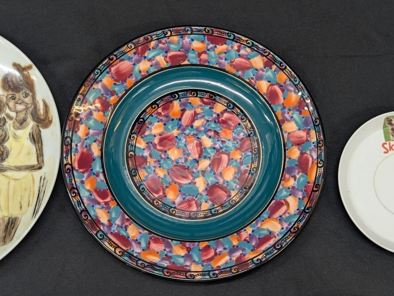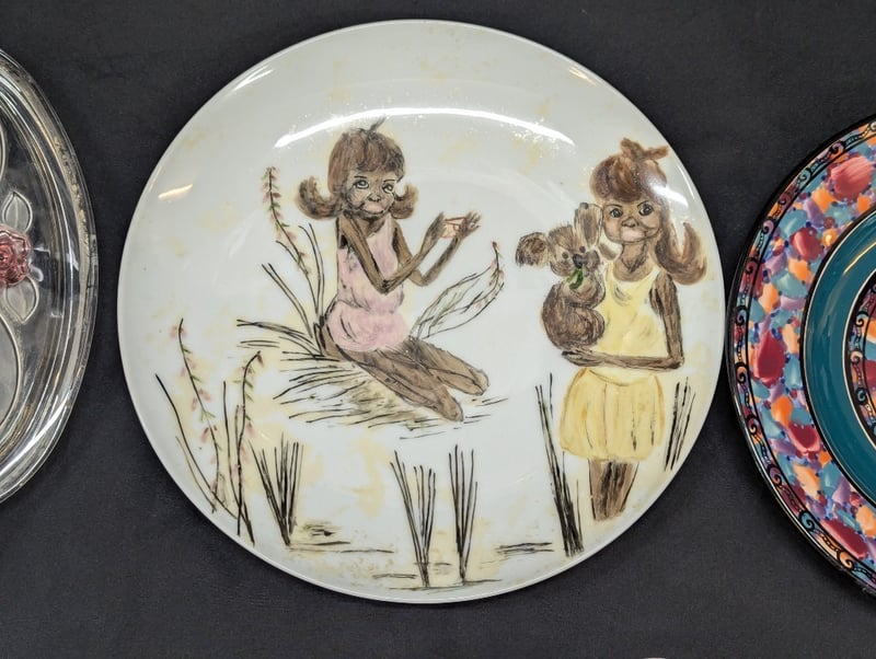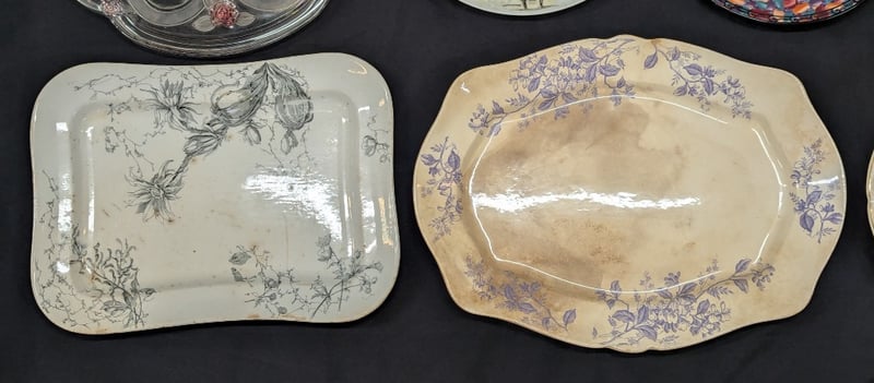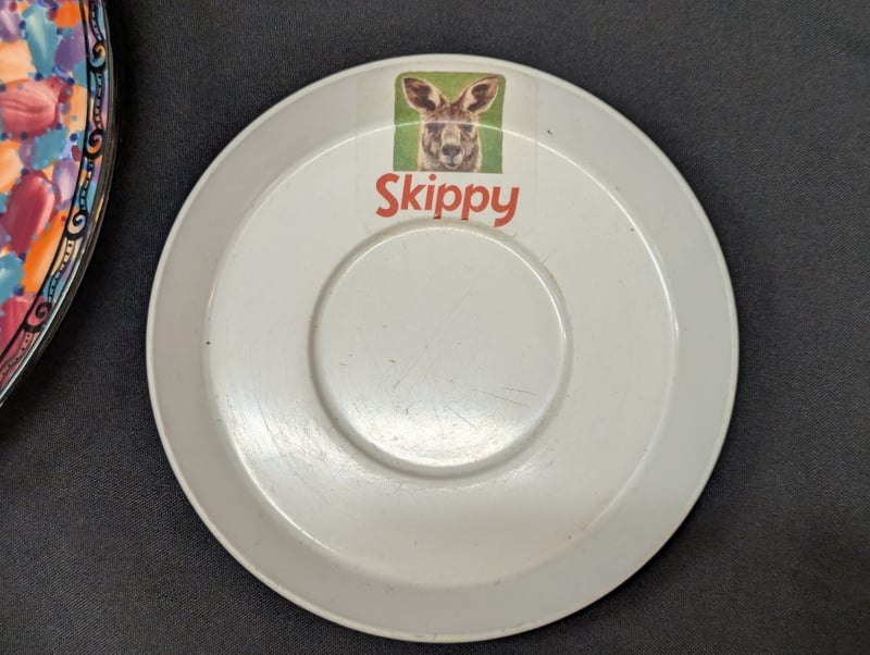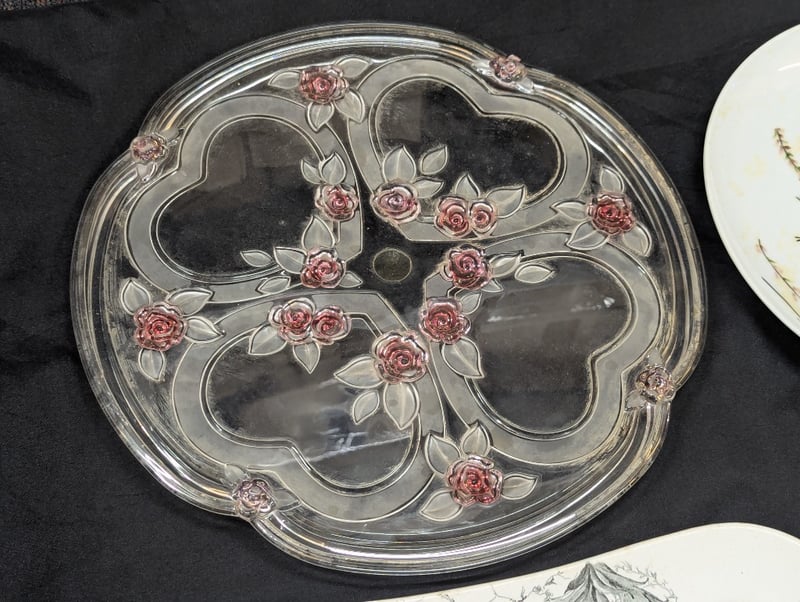 COLLECTION OF DECORATIVE PLATES AND SERVING TRAYS Includes Glass Plate With Rose Style Designs (Diameter: 34Cm), Skippy The Kangaroo Plate, Two Serving Trays With Floral Patterns, Australian Native Art Decorative Plate, Etc Condition: Good - Refer To Images 584862+6
