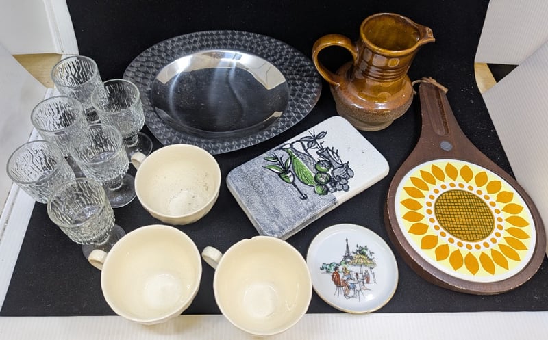 COLLECTION OF HOME AND TABLEWARE ITEMS Items Include Ceramic Style Jug, Collection Of Glasses And Teacups, Hot Plate With Floral Style Design, Metal Dish, Etc 584867+14