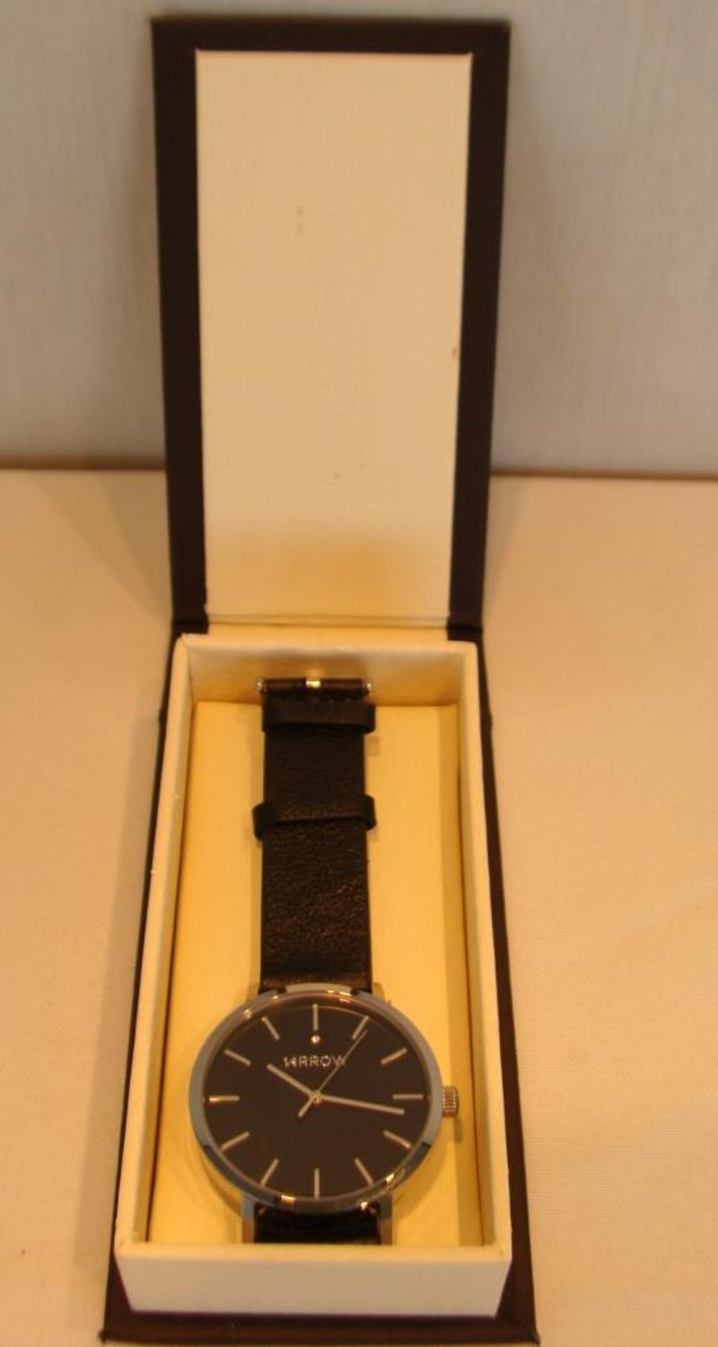 NEW 1 ARROW WATCH, WATER RESISTANT 5ATM, LEATHER BAND, NEW BATTERY JUST FITTED, BOXED. 586117+15