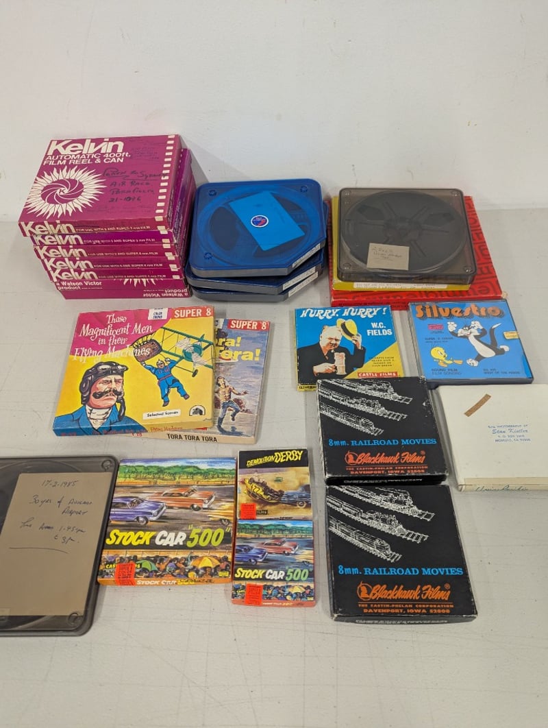 ASSORTED FILMS, SUPER 8, INCLUDES RAILROAD MOVIES, AIR MOTOR RACING, STOCK CAR 500 AND MORECondition: Good - Refer To Images586161+10