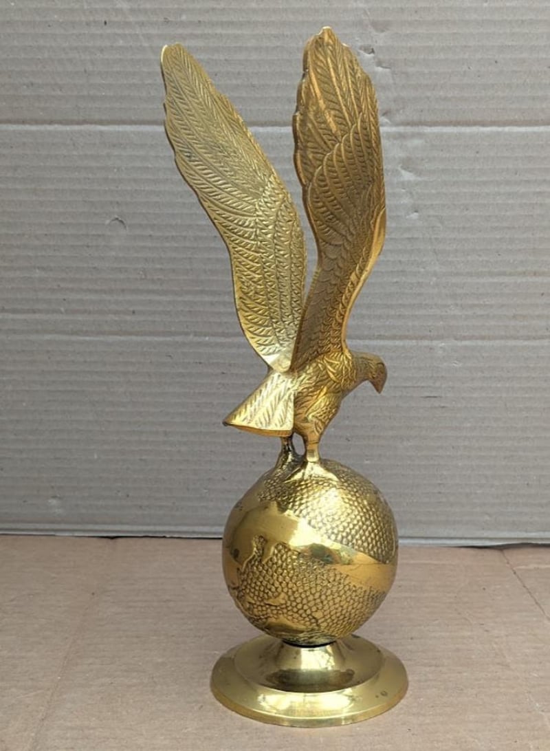 BRASS STATUE OF EAGLE PERCHED ON GLOBE 29CM TALL Condition: Good - Refer To Images+3
