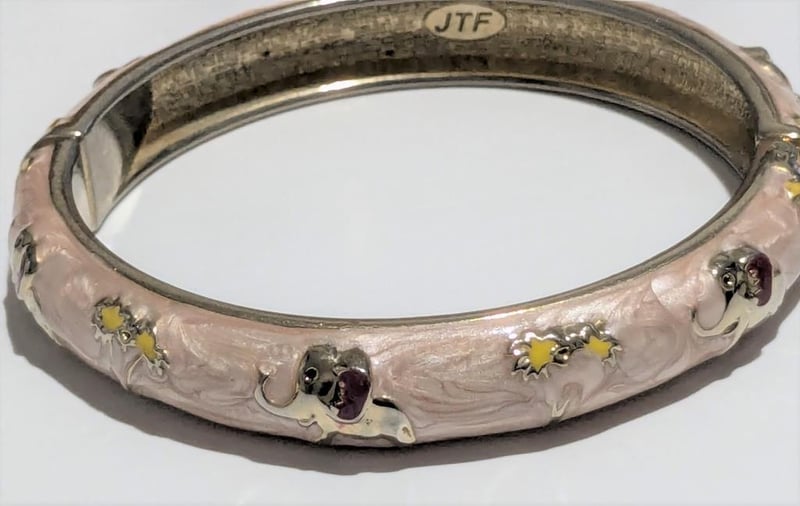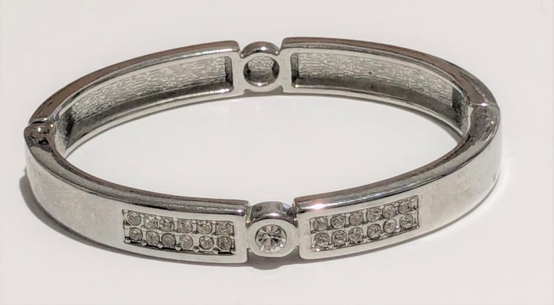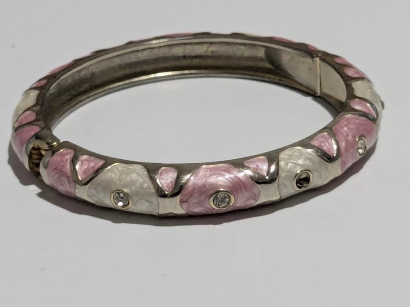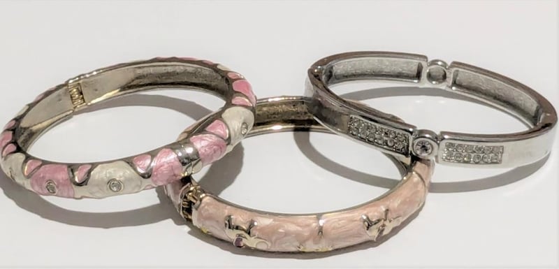 ENAMEL & FAUX SILVER BANGLES Qty Of 3 Condition: Good - Refer To Images +18