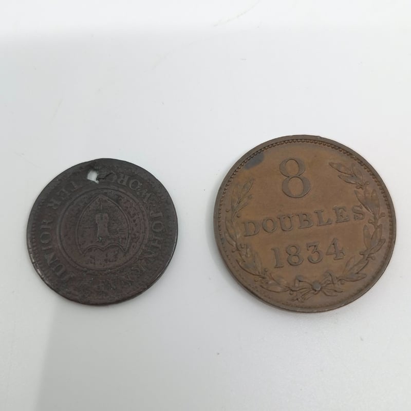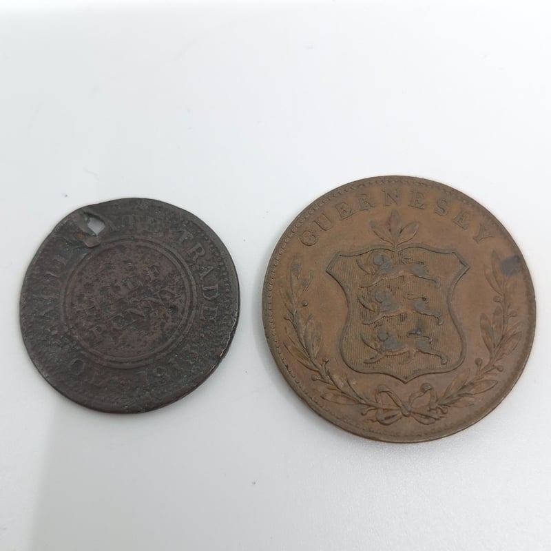 1834 GUERNESEY DOUBLES COIN & 1813 HALF PENNY