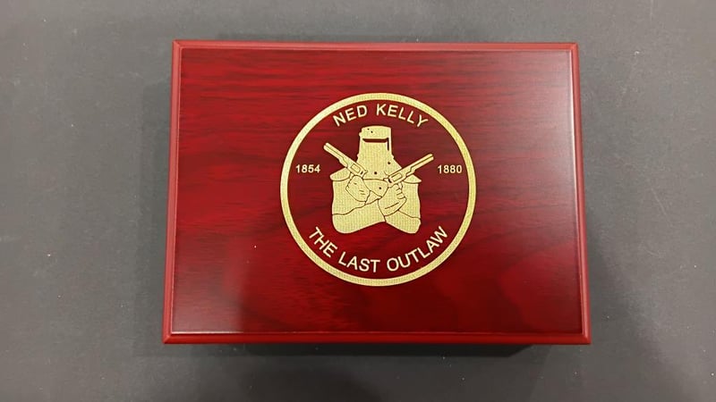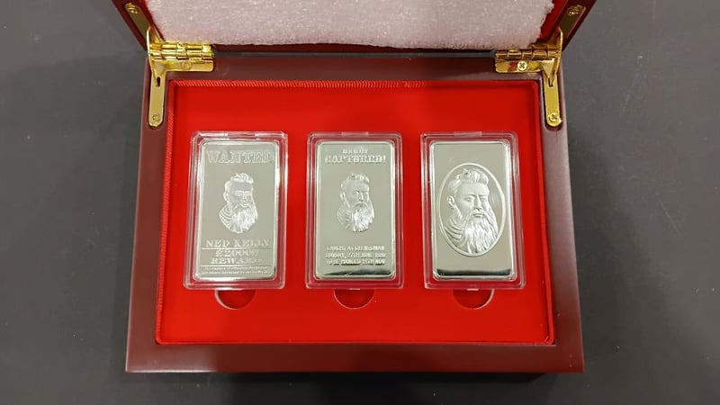 Ned Kelly set of 3 X 1 troy Ingots, each ingot is double sided finished in Silver plating, LIMITED EDITION In a wooden Display box GREAT Xmas Gift