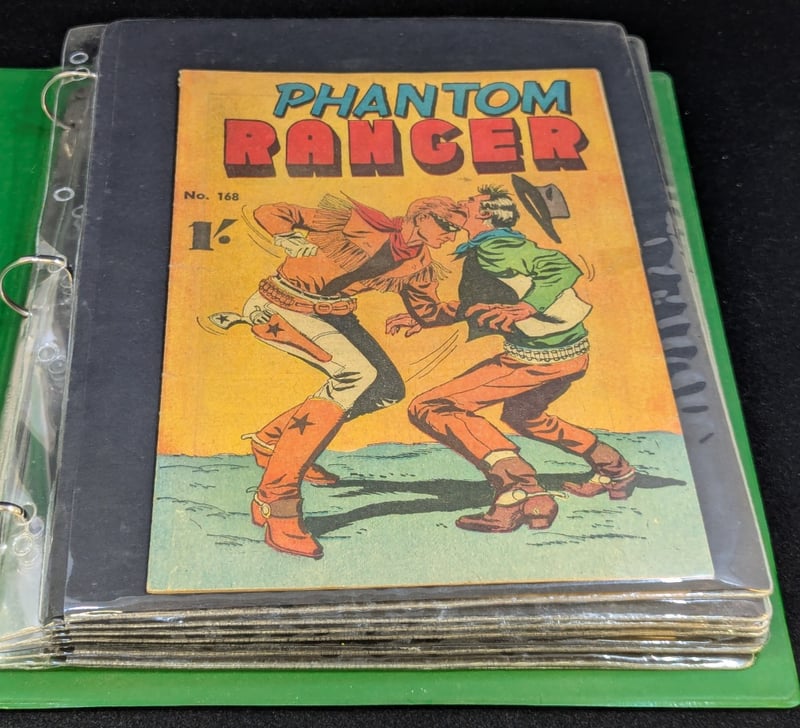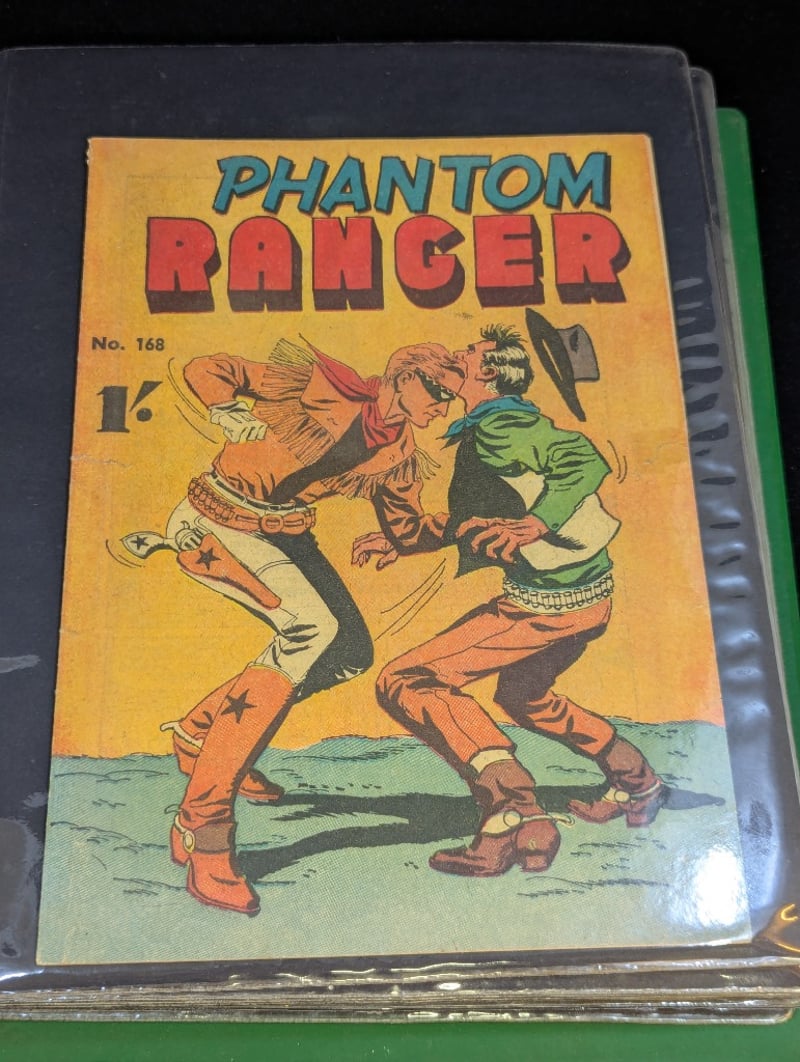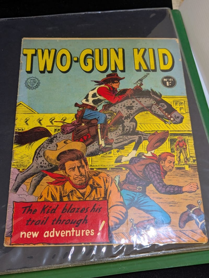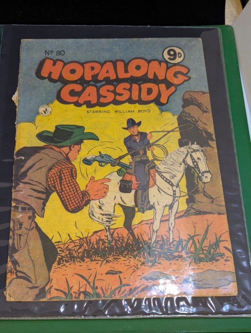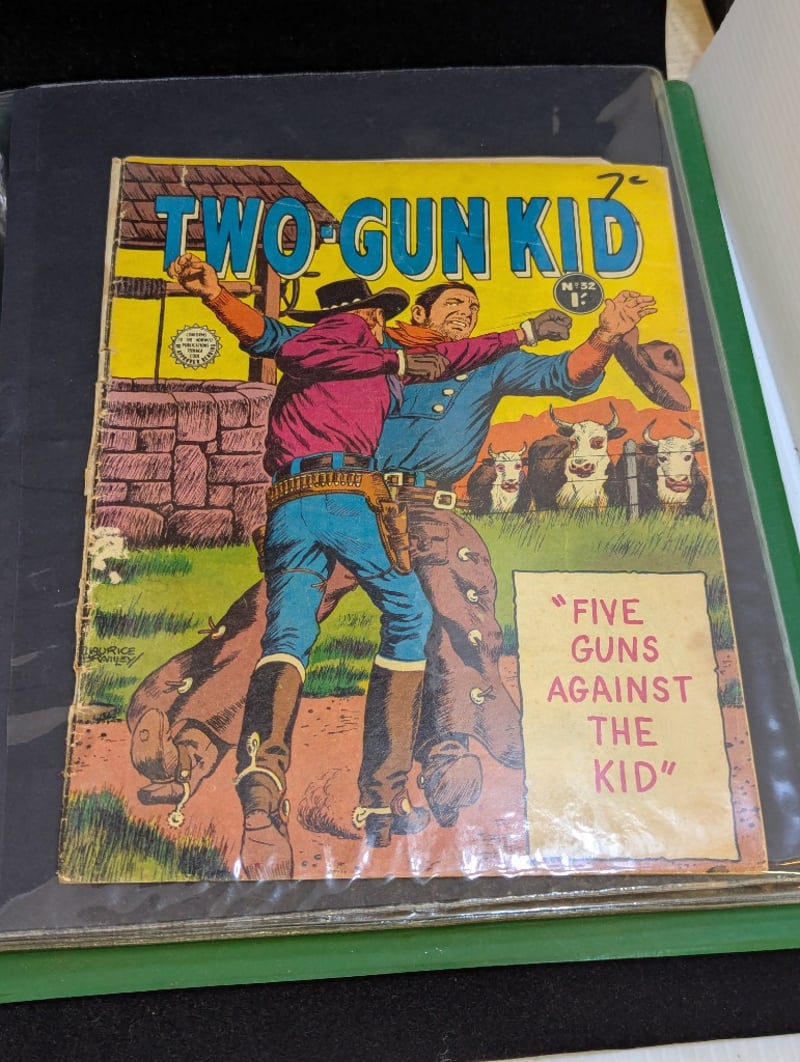 COLLECTION OF COMIC BOOKSComics Include:Phantom Ranger (No: 166, 168), Flying Saucers Comics, Two Gun Kid - Five Guns Against The Kid, Masked Raider And Talon The Golden Eagle, Two Gun Kid (No: 41), King (No: 5, 21), Hopalong Cassidy (No: 80, 100), EtcCondition: Good - Refer To Images584968+11