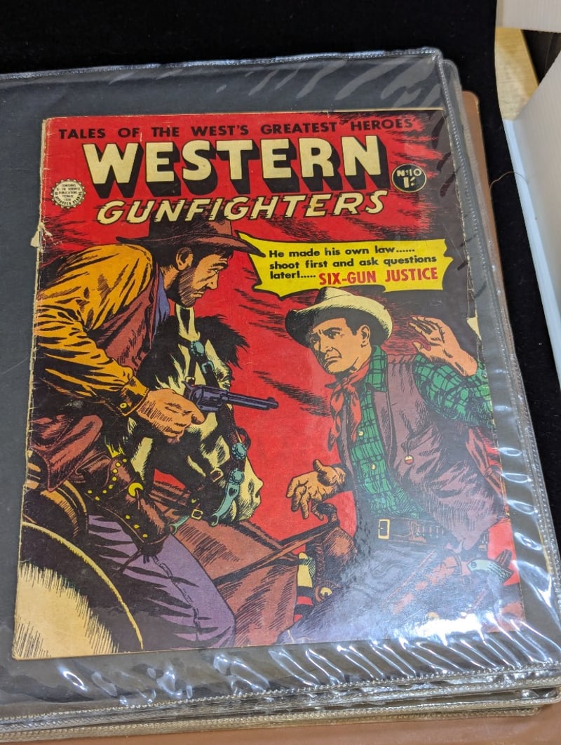 COLLECTION OF COMIC BOOKSBooks Include:Air Hawk (No: 3), John Wayne Adventures (No: 6), African Adventures (No: 1), Indian Fighter (No: 11), Western Gunfighters (No: 10), Jungle Jim (No: 25, 26, 28), Kid Montana - Dynamite Showdown, Secret Agent X-9 (No: 26), Six Gun Heroes, Wyatt Earp (No: 6), EtcCondition: Good - Refer To Images584968+15