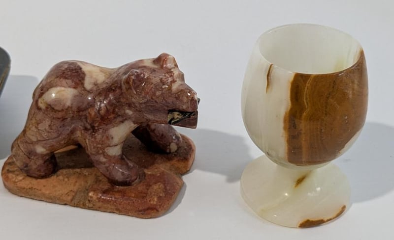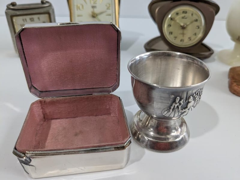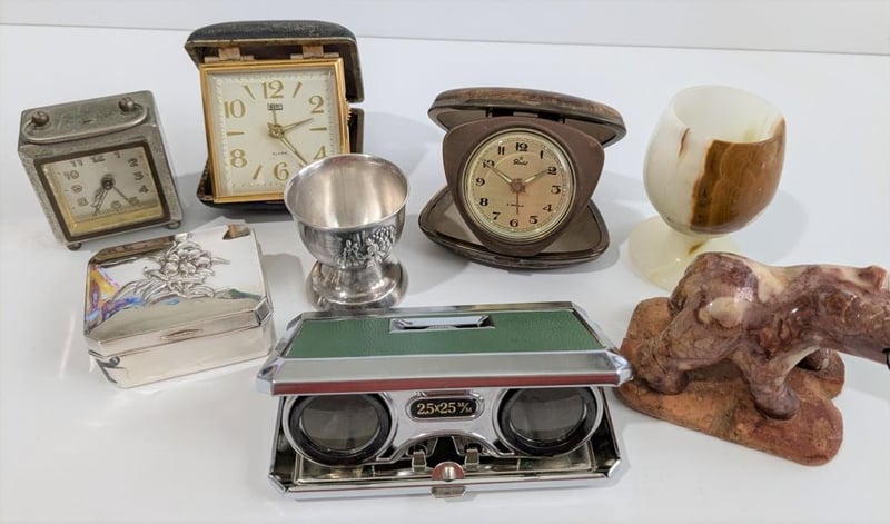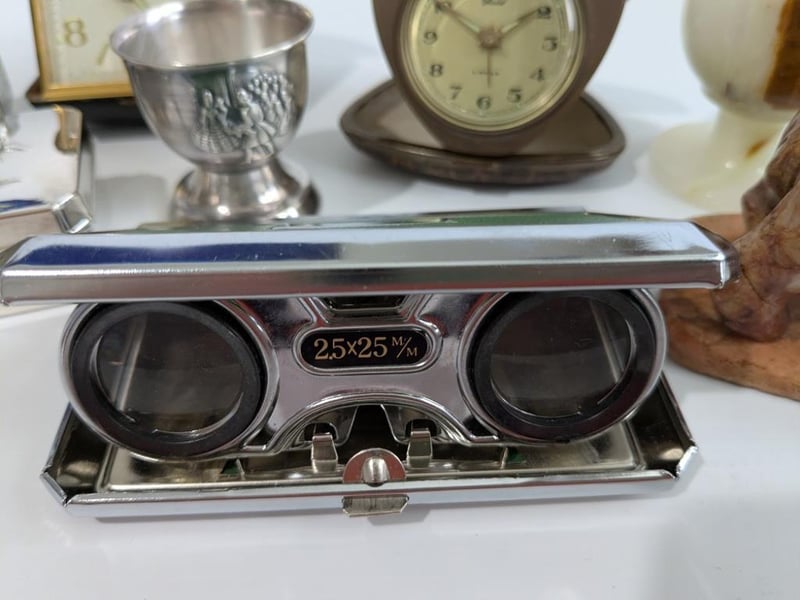 Including Fold Up Binoculars, Egg Cup, Carved Bear, Clocks & Box, Clocks Not Tested