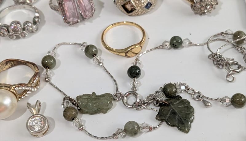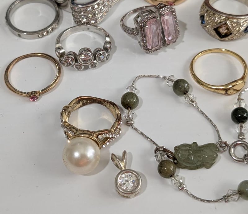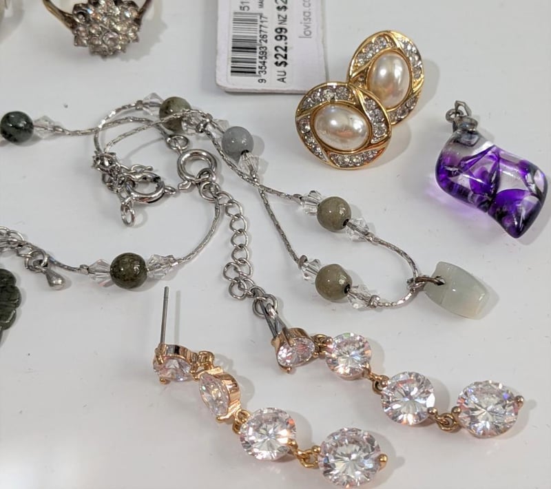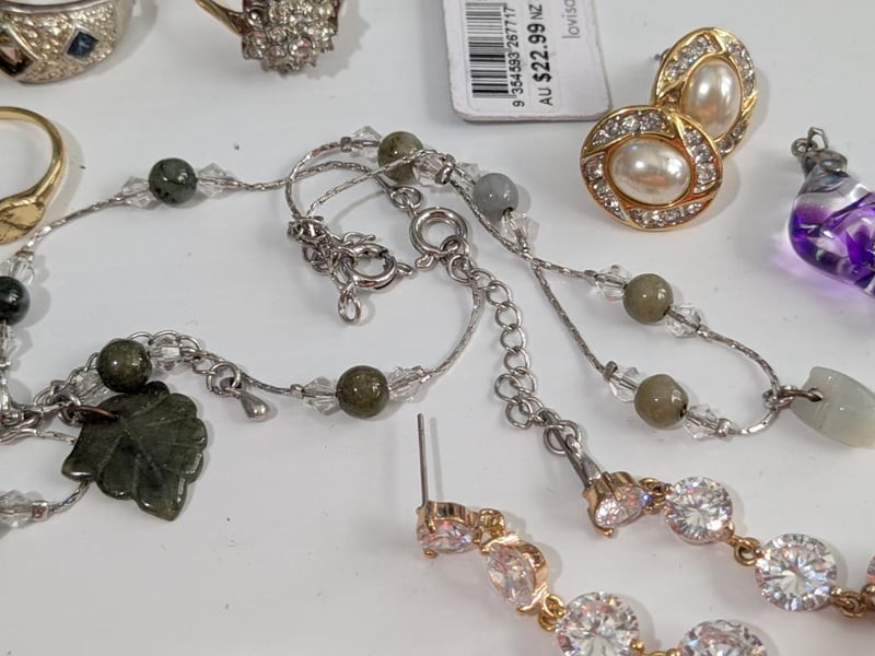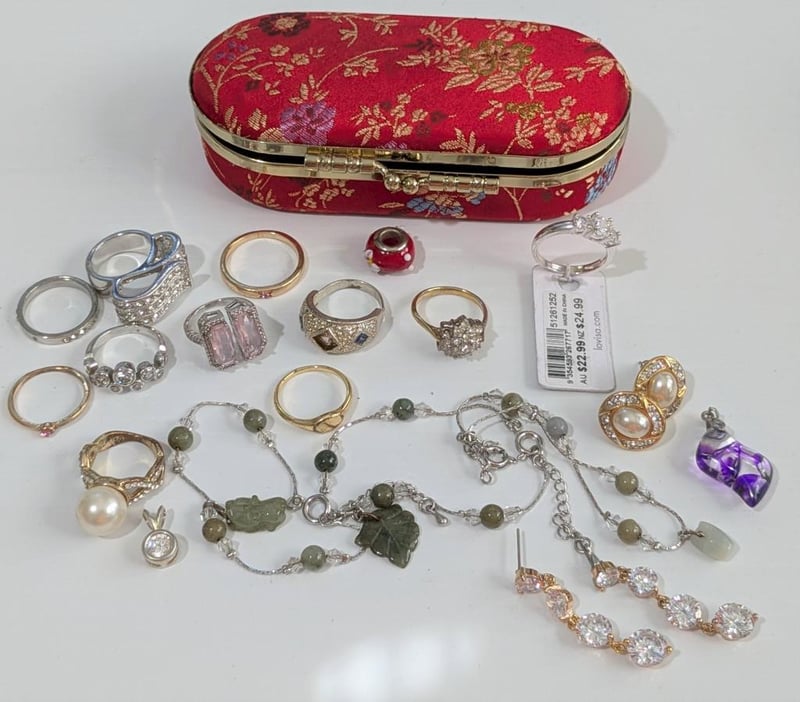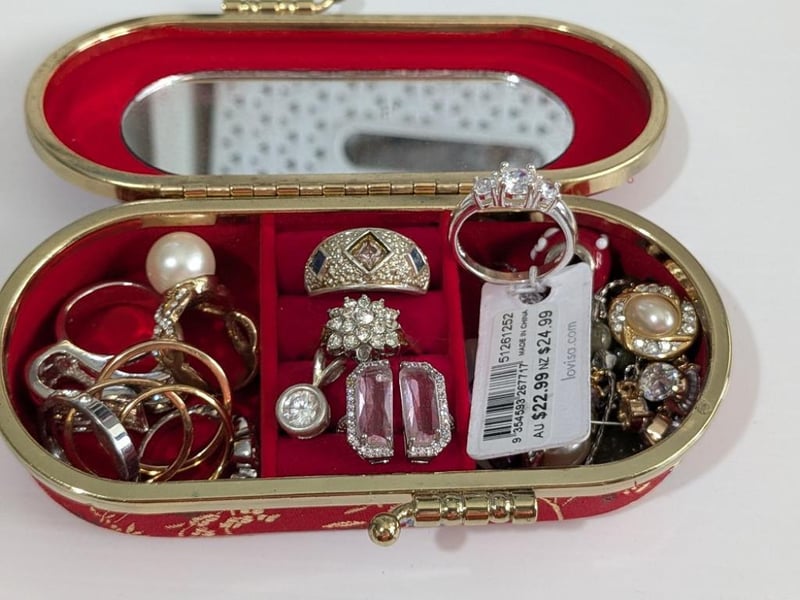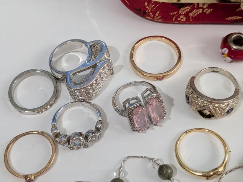 ASSORTED COSTUME JEWELLERY IN SMALL RED SATIN COVERED BOXCondition: Good - Refer To Images586153+7