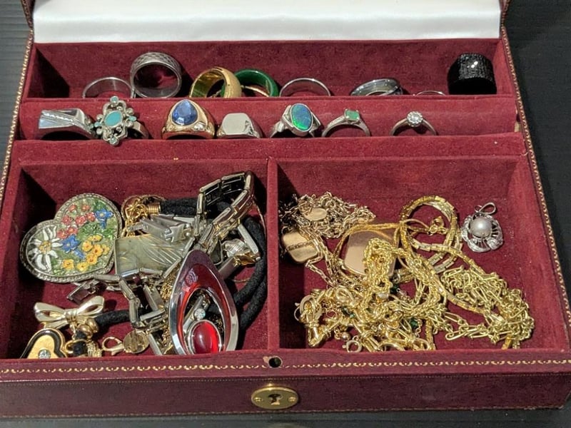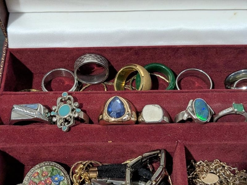 ASSORTED COSTUME JEWELLERY IN BURGUNDY VINYL JEWELLERY BOX