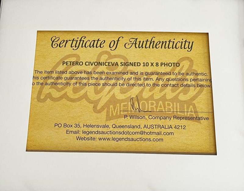 Petero Civoniceva Signed Framed Photo with certificate 8x10