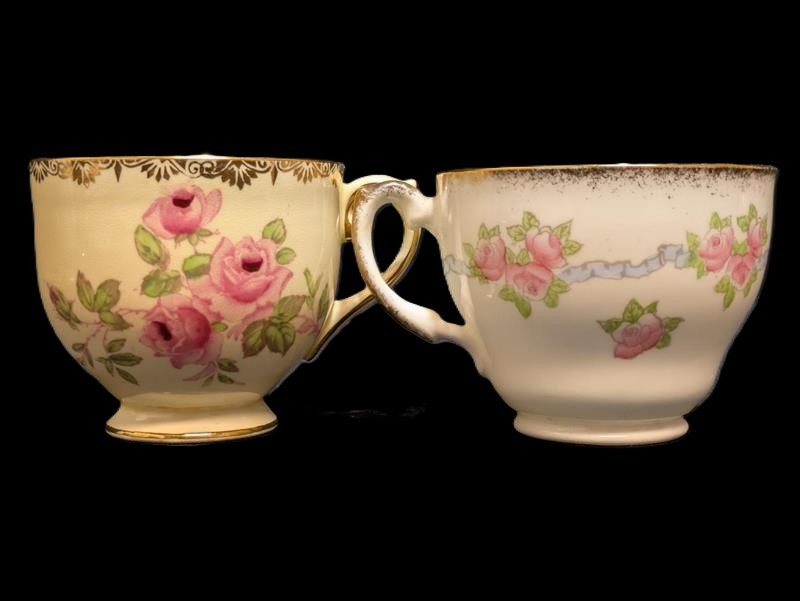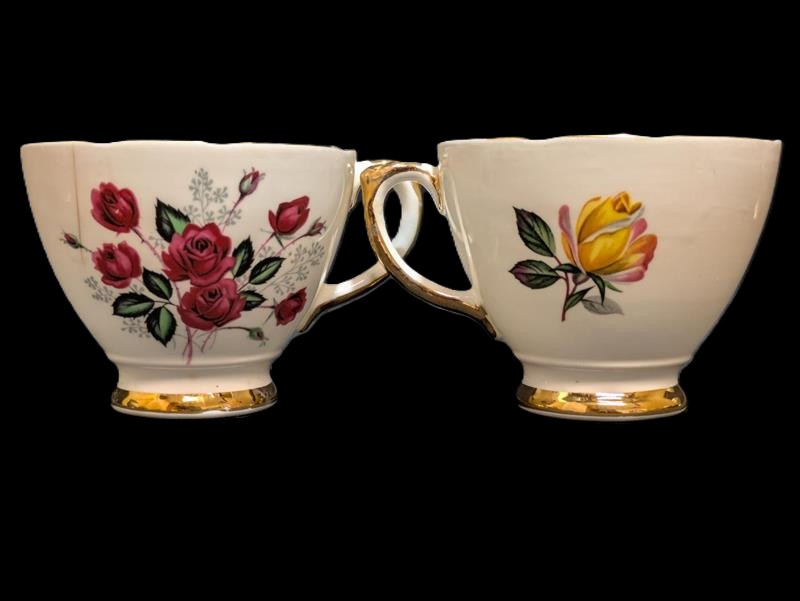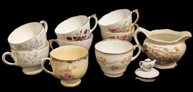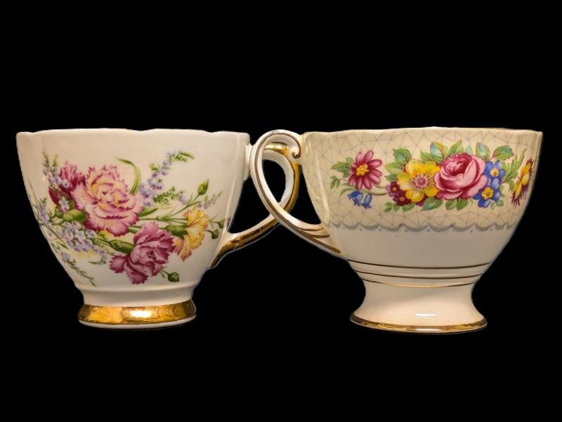 COLLECTION OF VINTAGE ENGLISH BONE CHINA TEACUPS & JUG – MIXED MAKERS