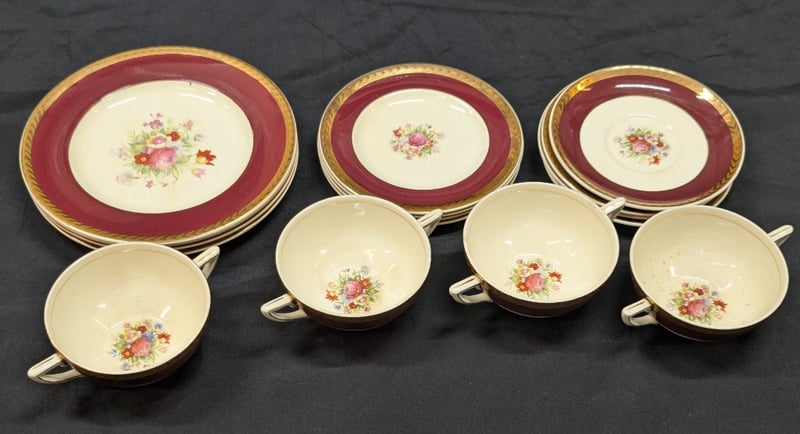 WEDGEWOOD DINNER SET FOR 4 INCLUDES 4 SOUP BOWLS WITH UNDER PLATE, 4 DINNER PLATES AND 4 SALAD PLATES.
