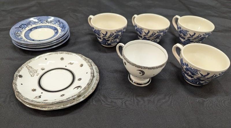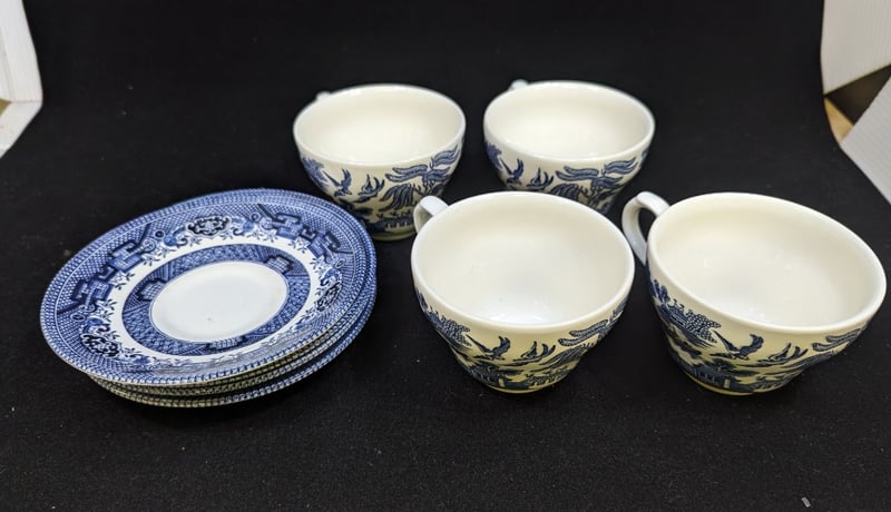4 CHURCHILL 'BLUE WILLOW' DUOS, 1 ROYAL STANDARD TRIO. ALL MADE IN ENGLAND..Condition: Good - Refer To Images584897+8